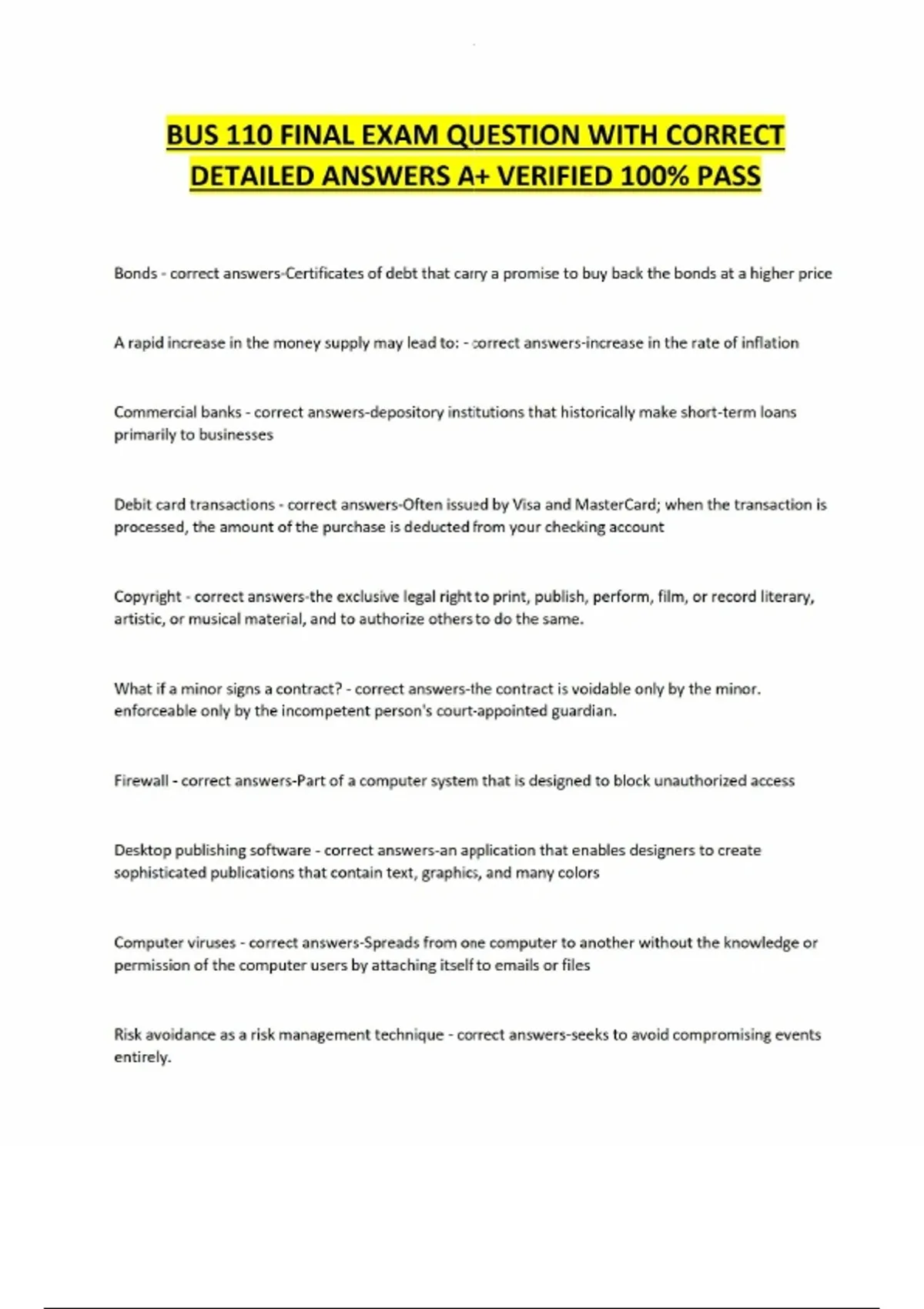 BUS 110 FINAL EXAM QUESTION WITH CORRECT DETAILED ANSWERS A+ VERIFIED 100% PASS