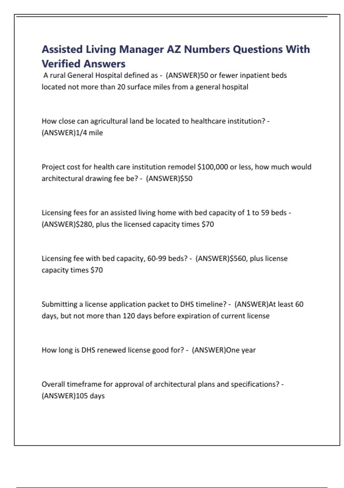 Assisted Living Manager AZ Numbers Questions With