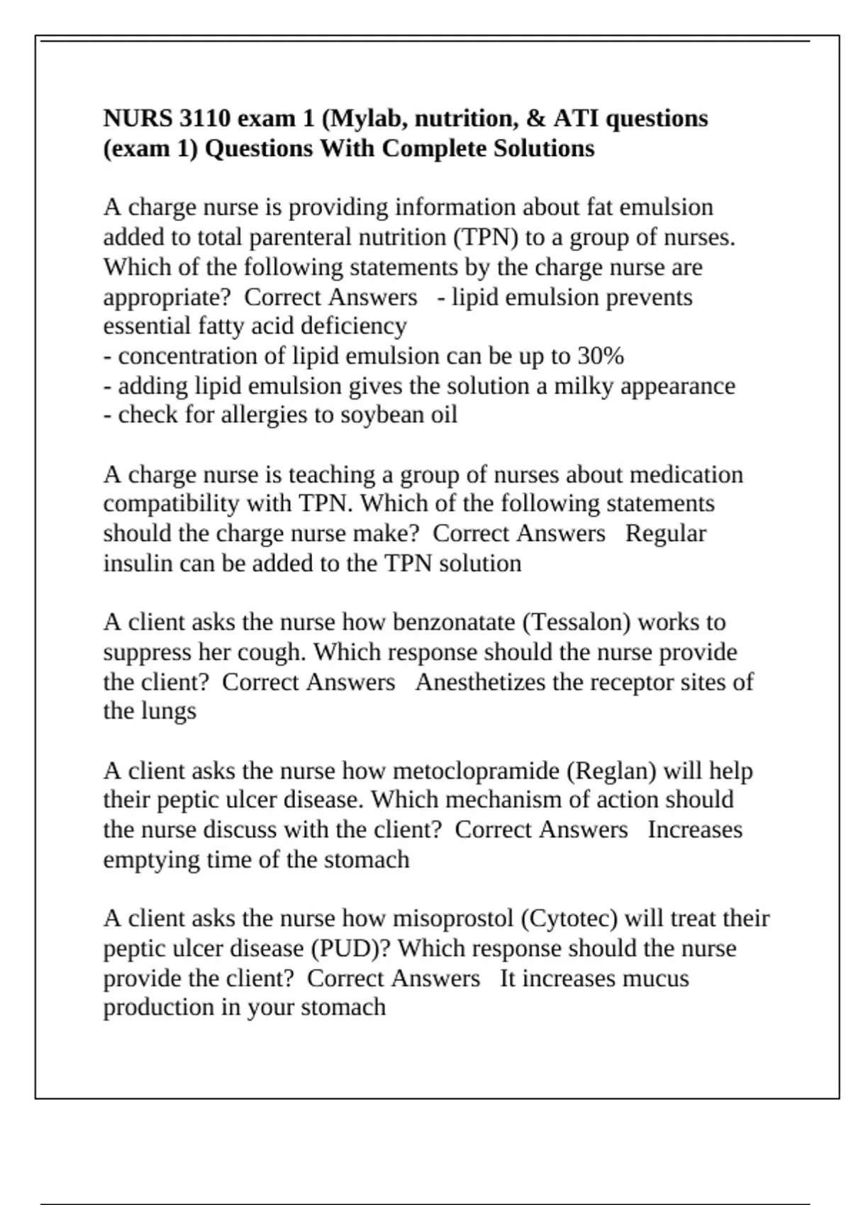 the client? Correct Answers Anesthetizes the receptor sites of