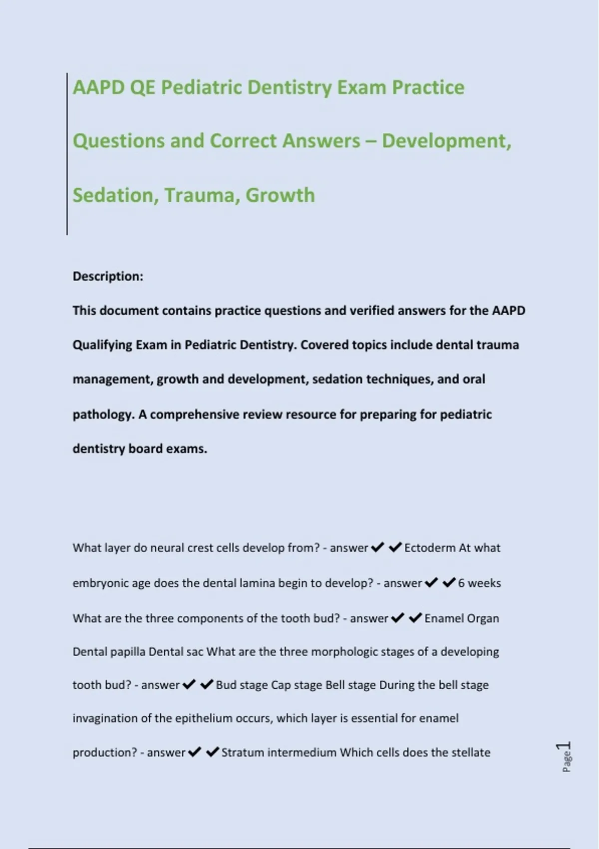 This document contains practice questions and verified answers for the AAPD