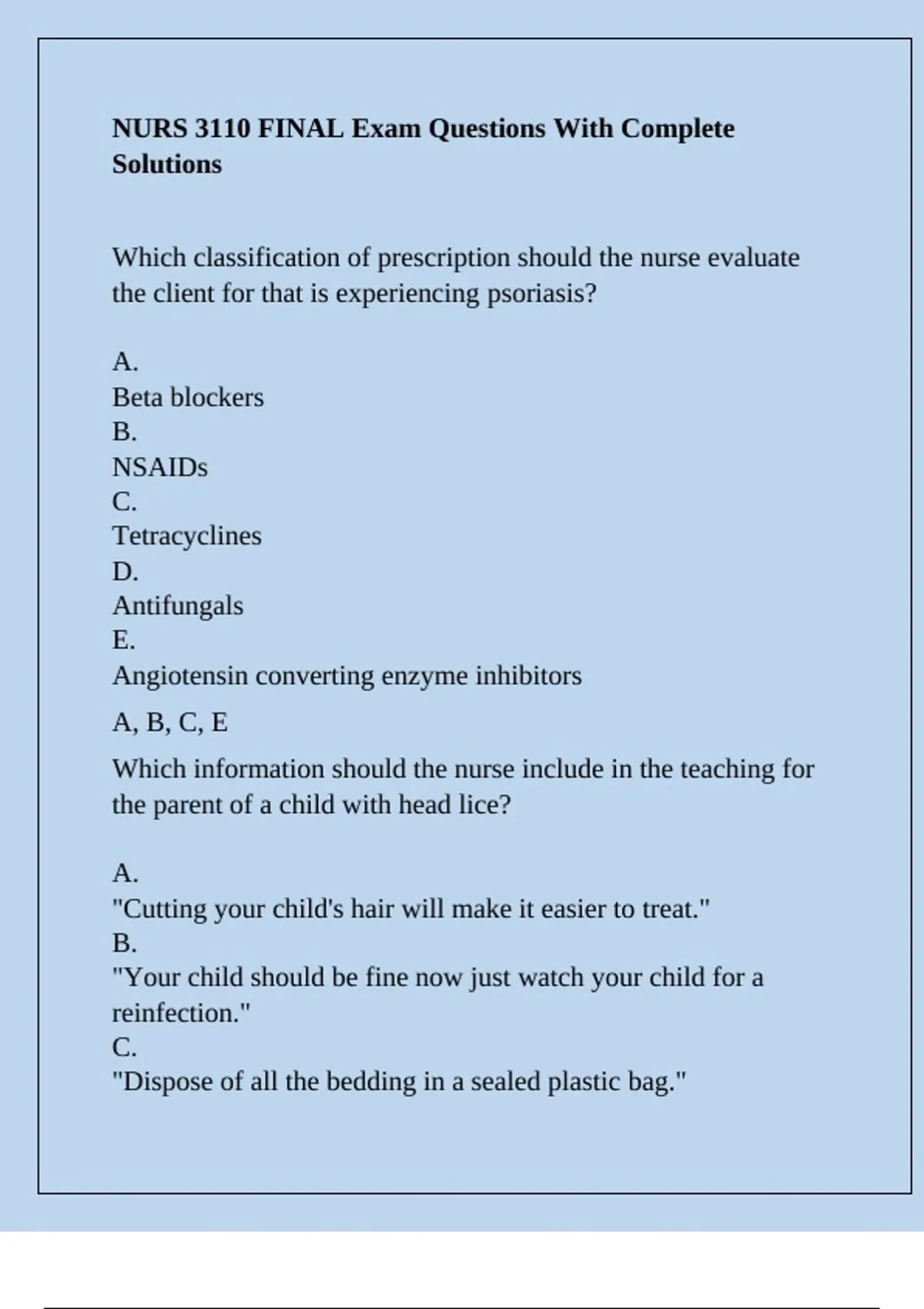 Clients who have contracted head lice in the nursing home are