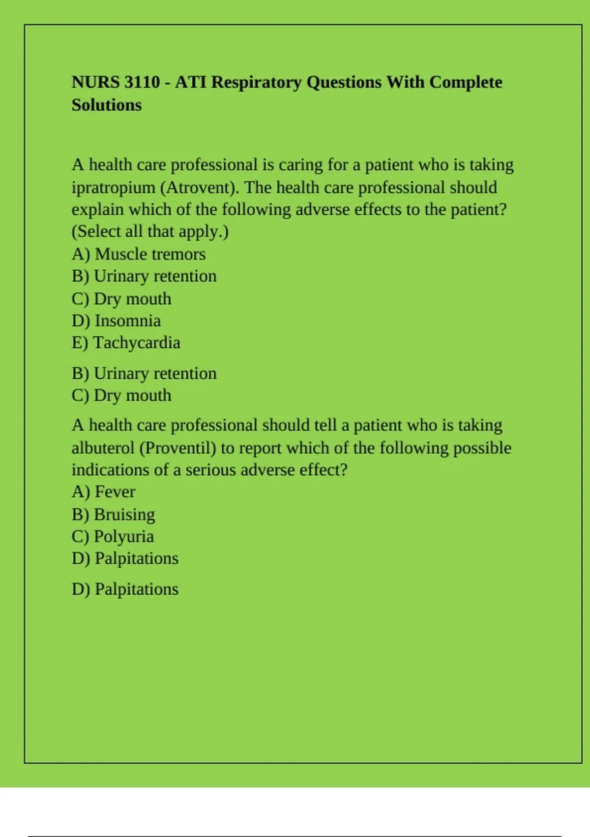 NURS 3110 - ATI Respiratory Questions With Complete Solutions