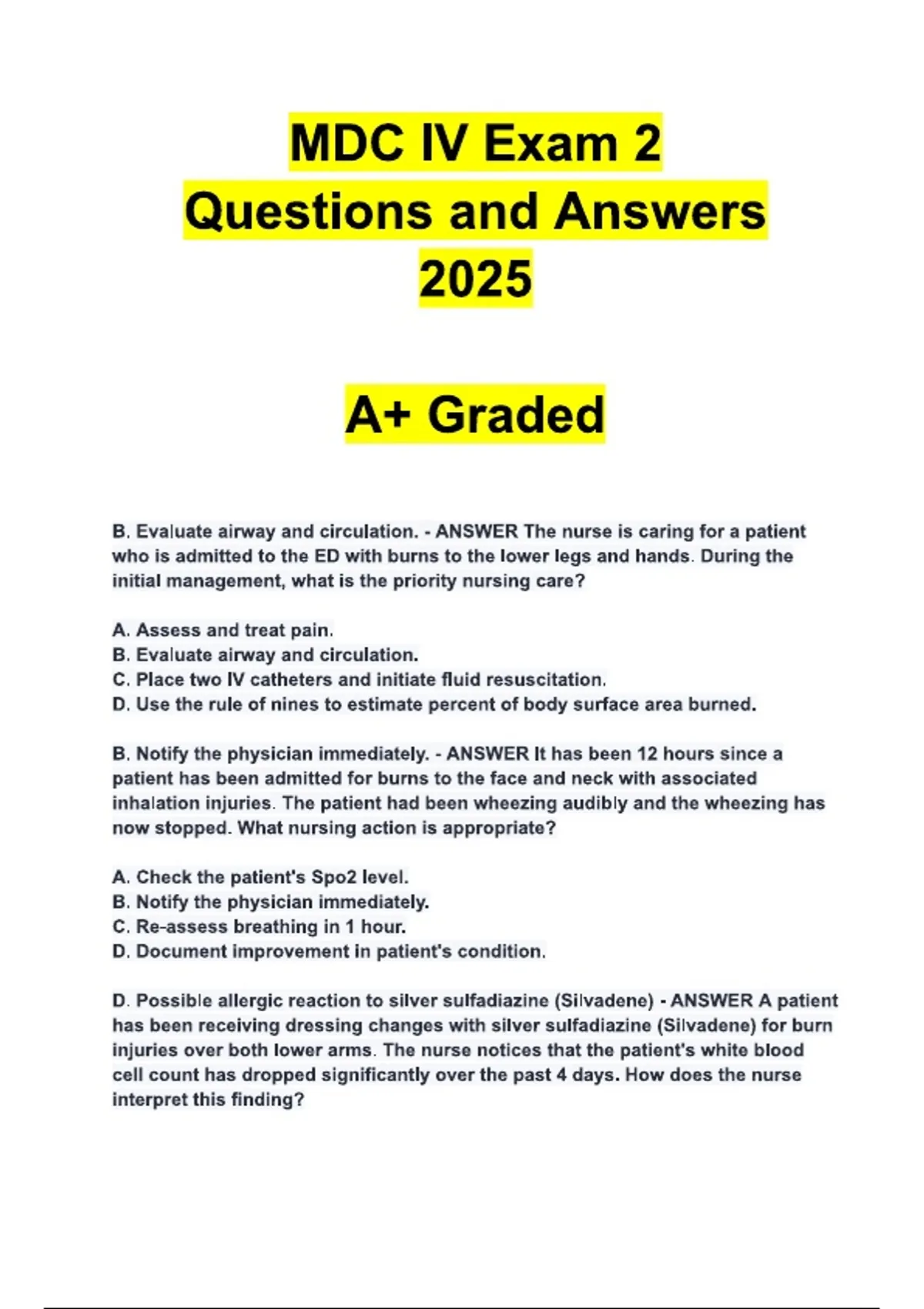 MDC IV Exam 2 Questions and Answers 2025 A+ Graded