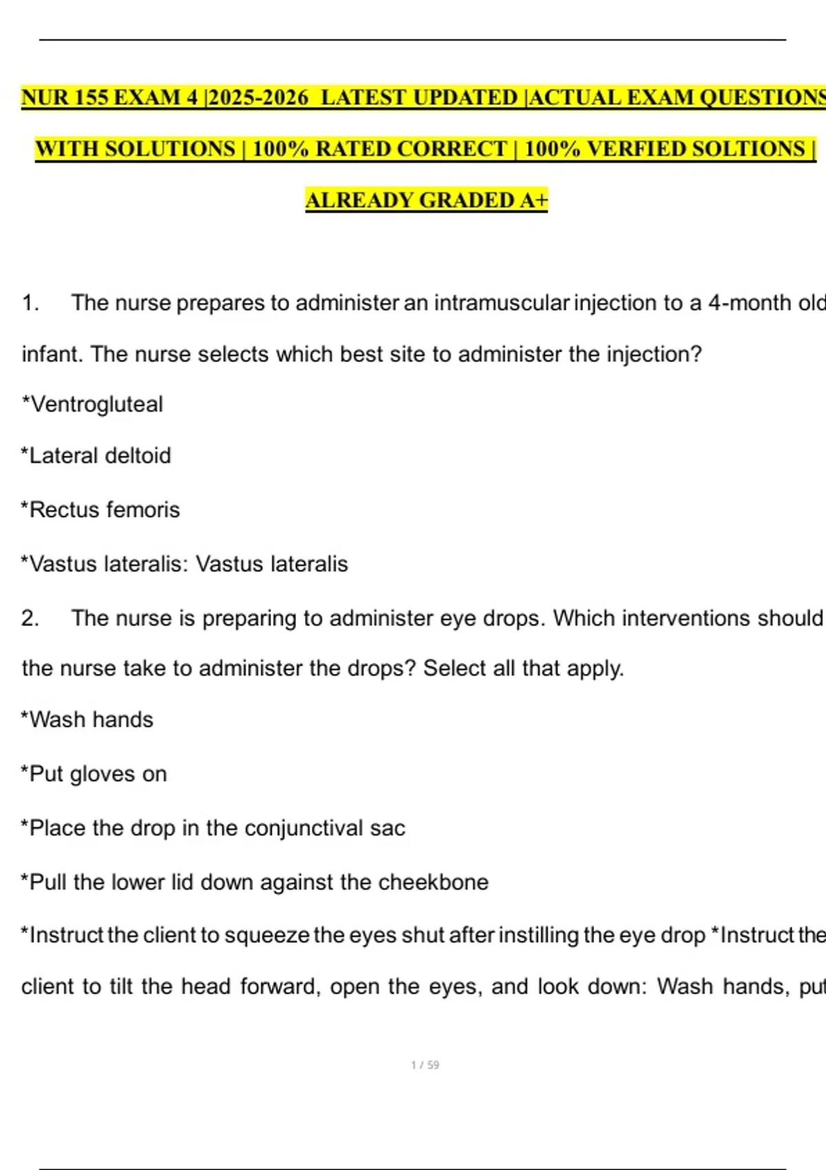 1. The nurse prepares to administer an intramuscular injection to a 4-month old