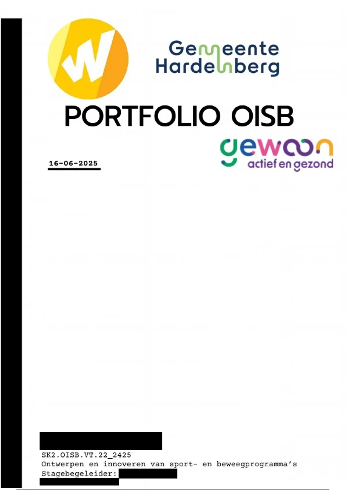 stageperiode bij de gemeente Hardenberg, dat onderdeel is van de opleiding Sportkunde aan