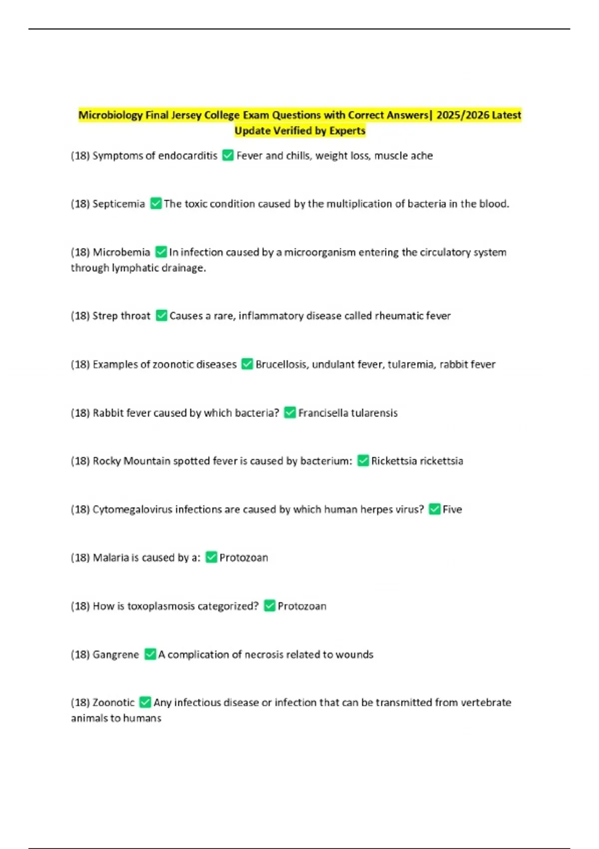 Microbiology Final Jersey College Exam Questions with Correct Answers| 2025/2026 Latest Update Verified by Experts