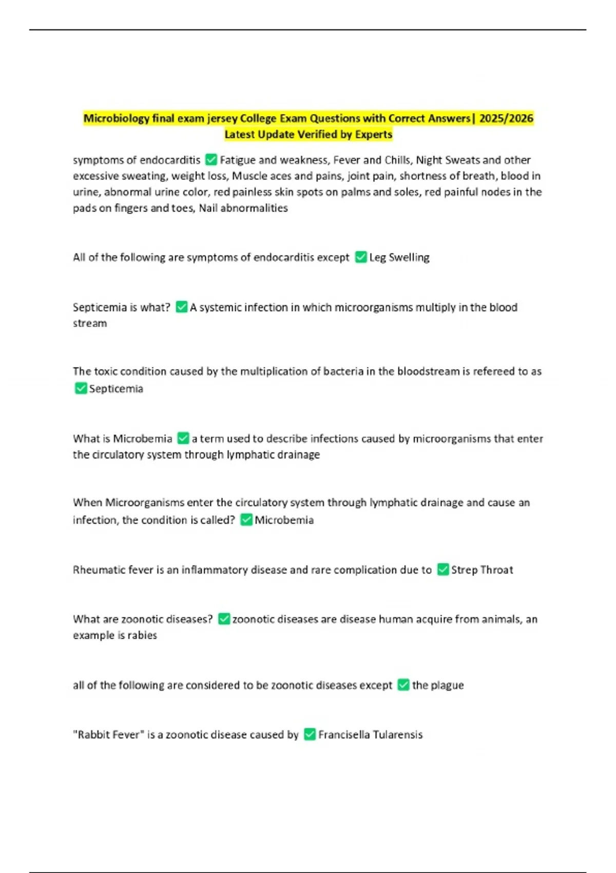Microbiology final exam jersey College Exam Questions with Correct Answers| 2025/2026 Latest Update Verified by Experts