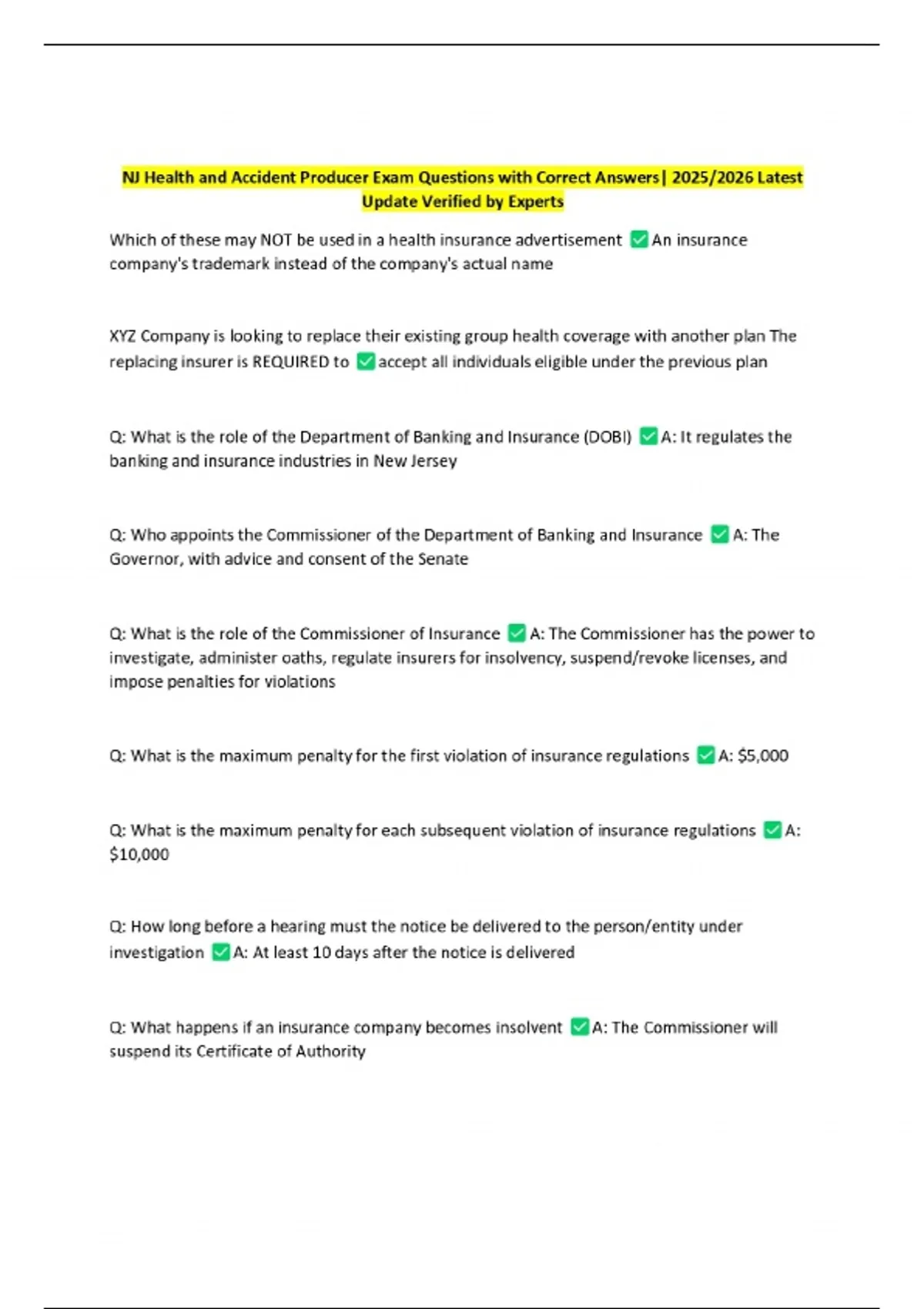 NJ Health and Accident Producer Exam Questions with Correct Answers| 2025/2026 Latest Update Verified by Experts