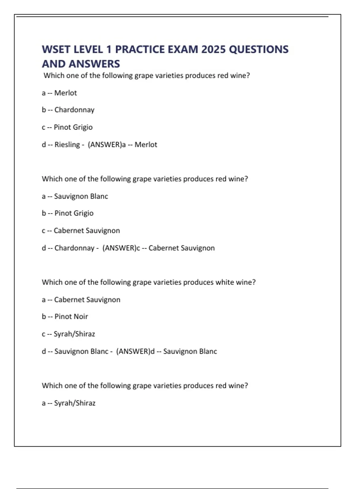 d -- Syrah/Shiraz - (ANSWER)a -- Riesling
