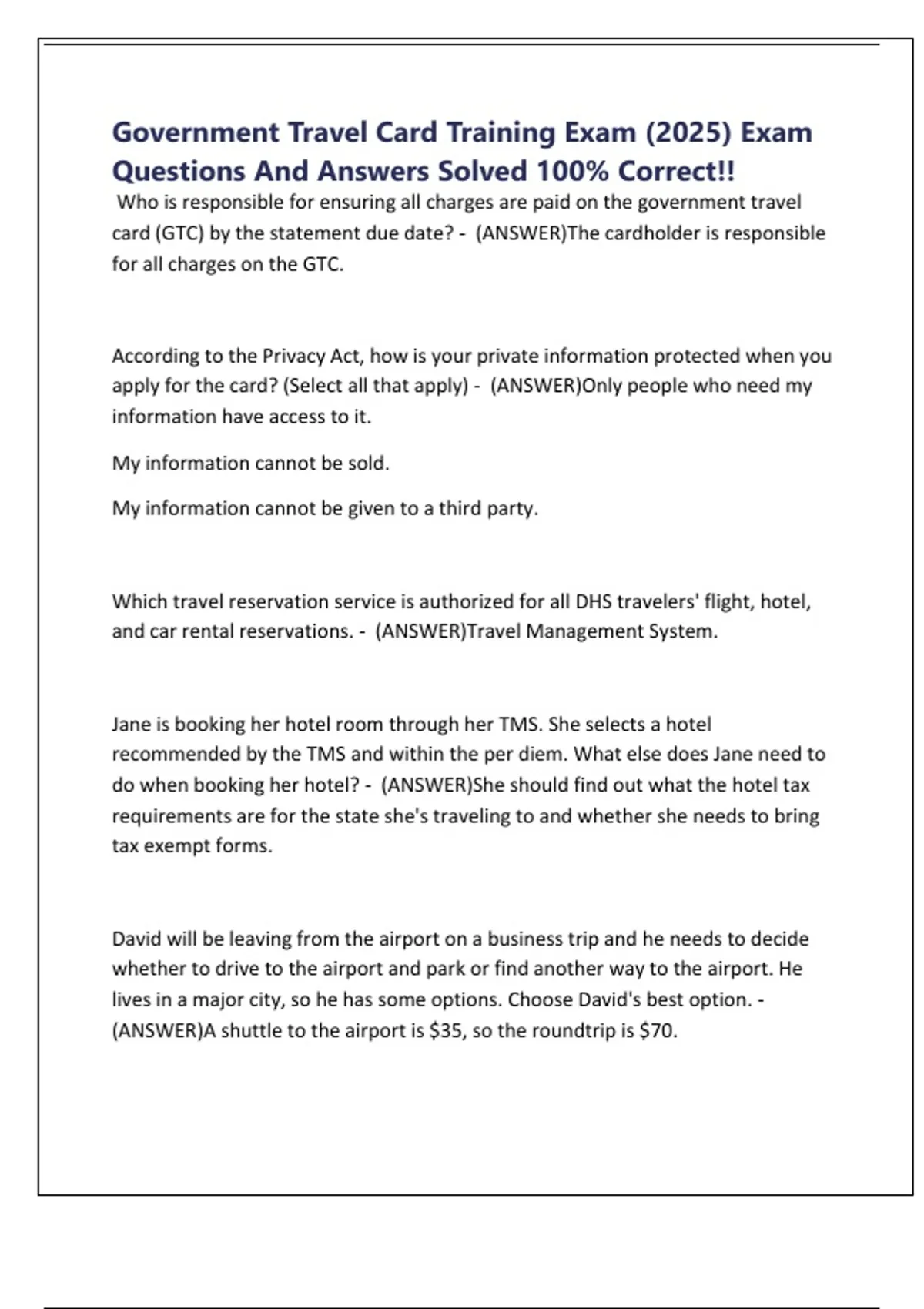 Government Travel Card Training Exam (2025) Exam Questions And Answers Solved 100% Correct!!