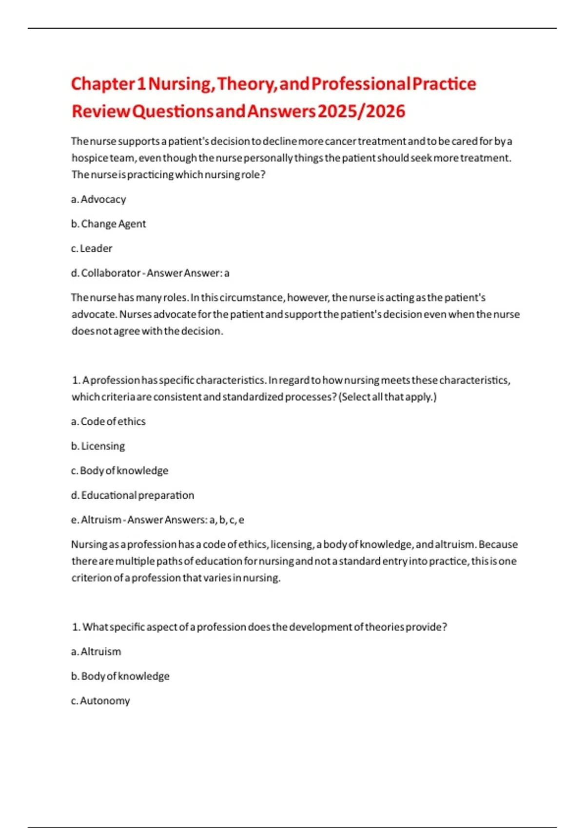 z 1. A profession has specific characteristics. In regard to how nursing meets these characteristics,