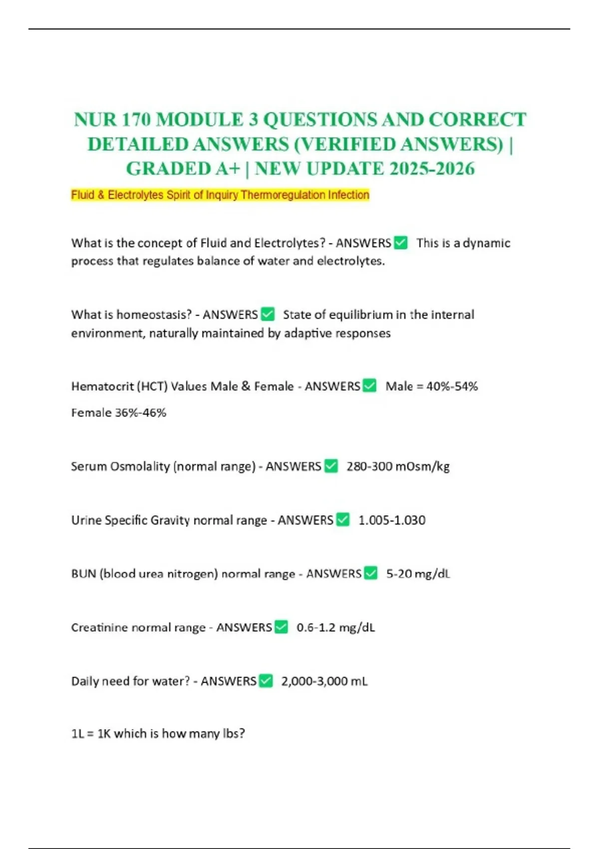 NUR 170 MODULE 3 QUESTIONS AND CORRECT DETAILED ANSWERS (VERIFIED ANSWERS) | GRADED A+ | NEW UPDATE