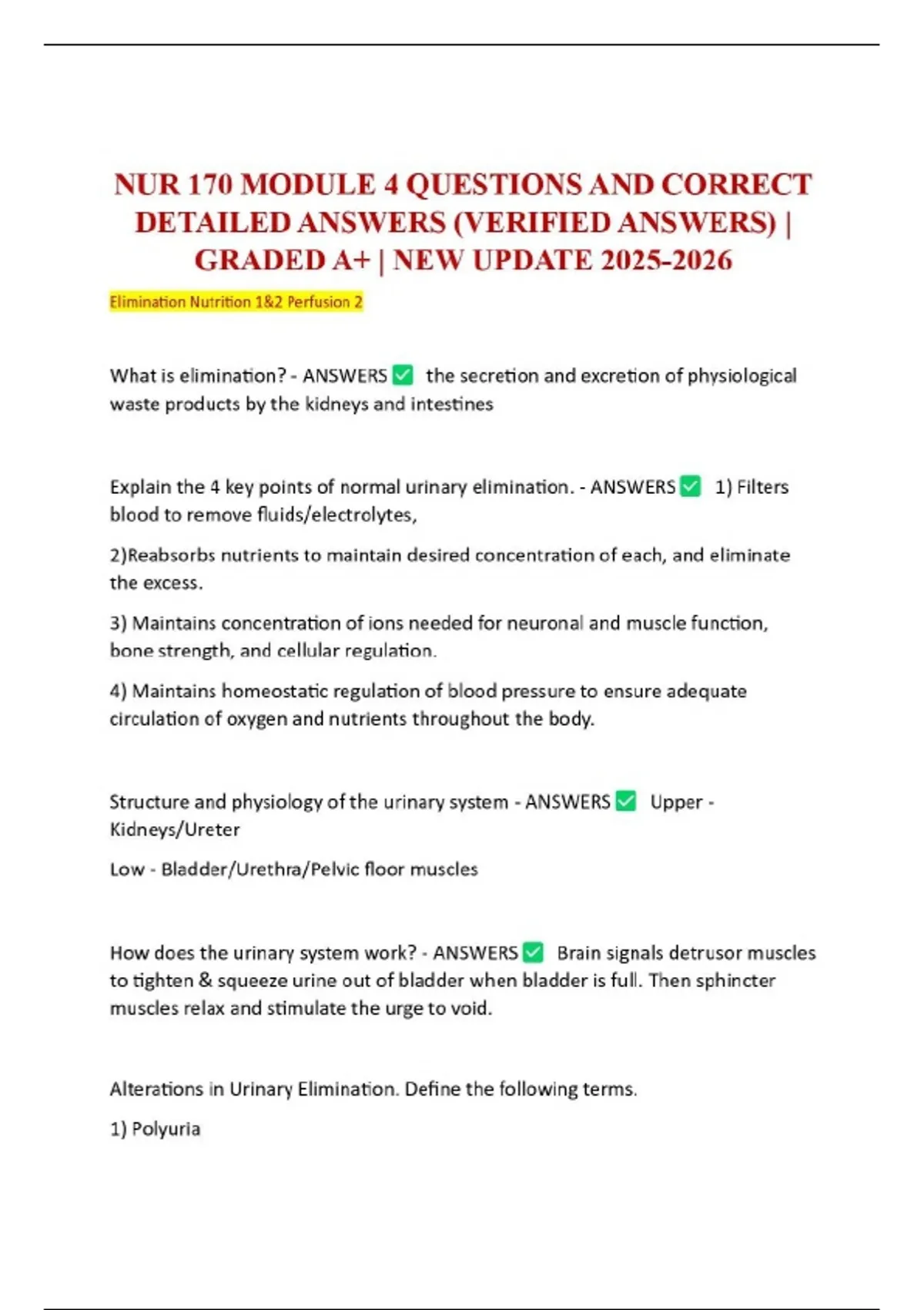 NUR 170 MODULE 4 QUESTIONS AND CORRECT DETAILED ANSWERS (VERIFIED ANSWERS) | GRADED A+ | NEW UPDATE