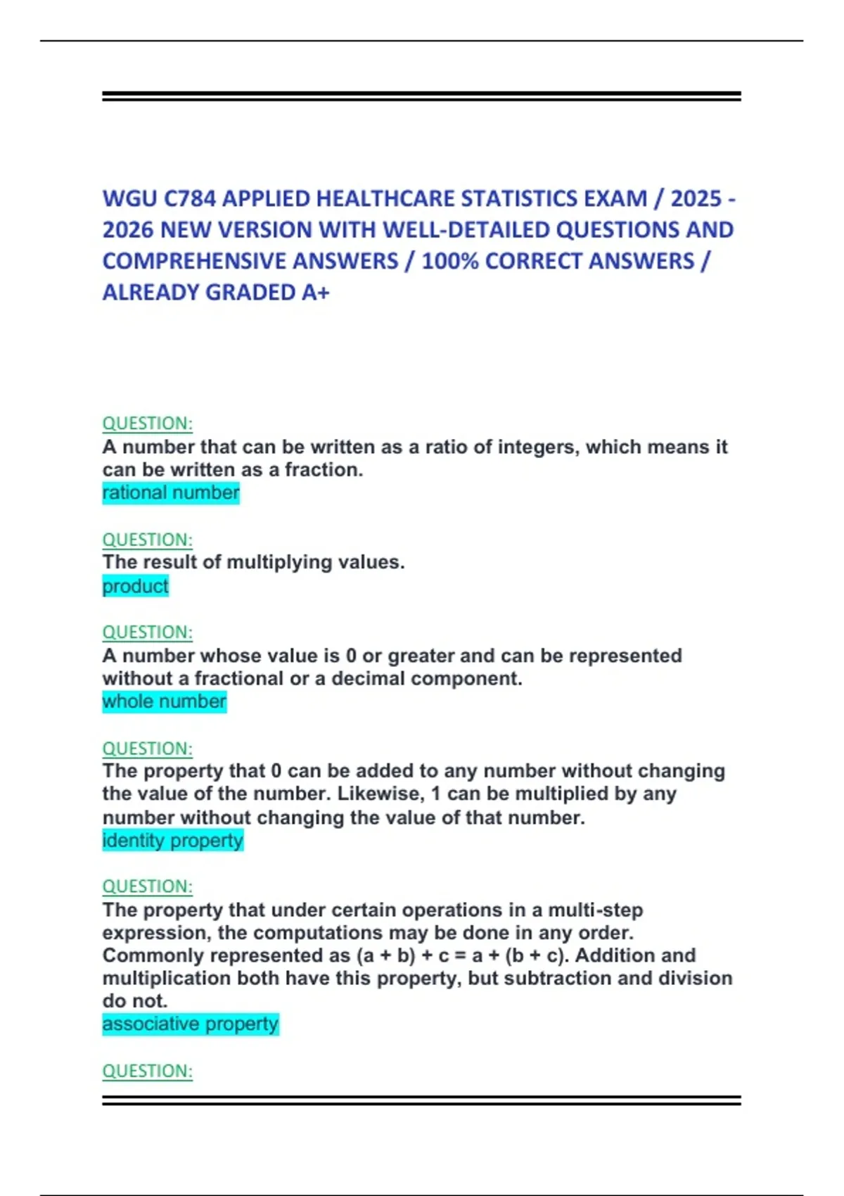WGU C784 APPLIED HEALTHCARE STATISTICS EXAM / 2025 -