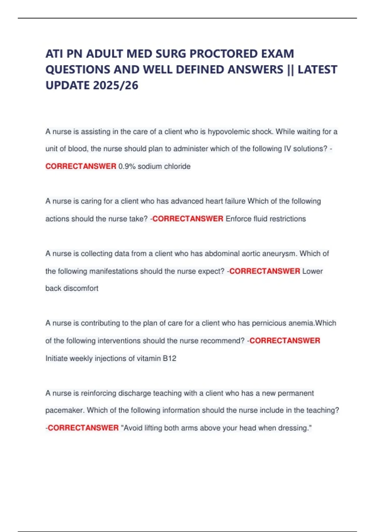 ATI PN ADULT MED SURG PROCTORED EXAM