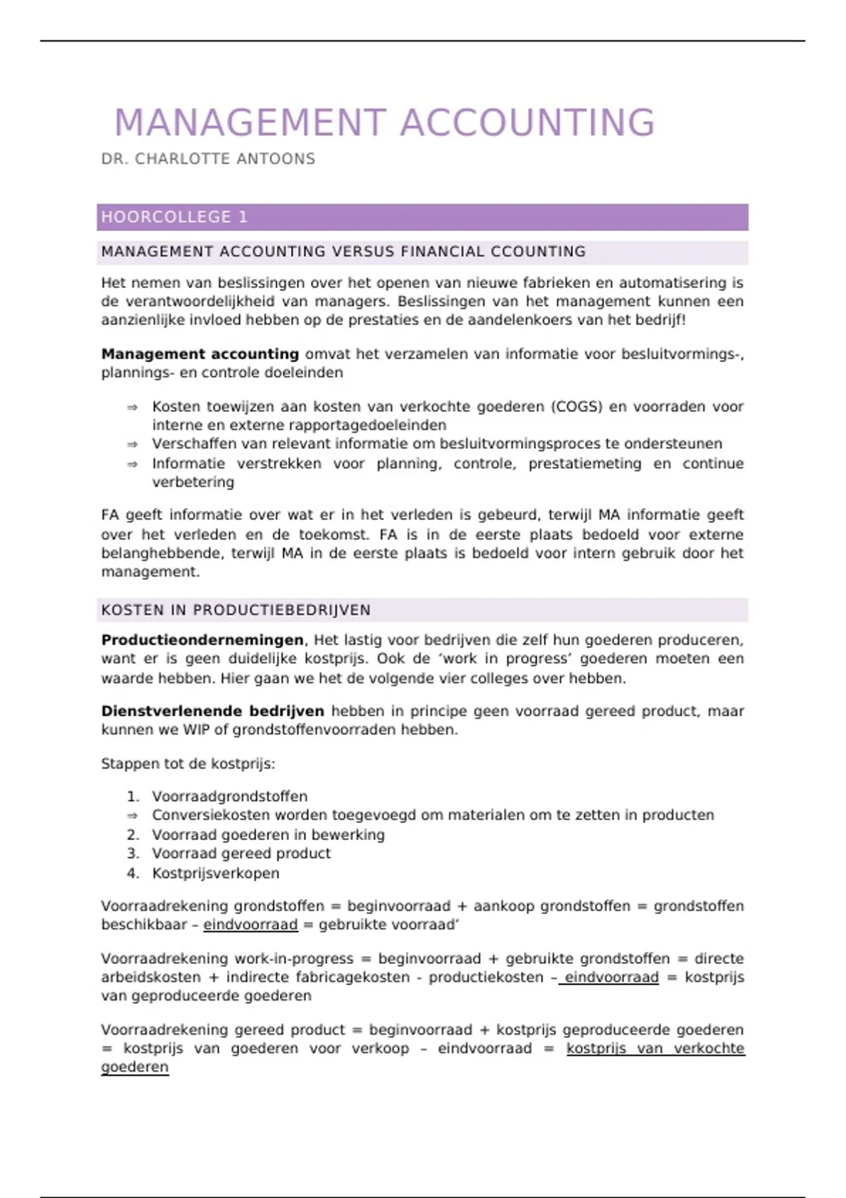 arbeidskosten + indirecte fabricagekosten - productiekosten – eindvoorraad = kostprijs