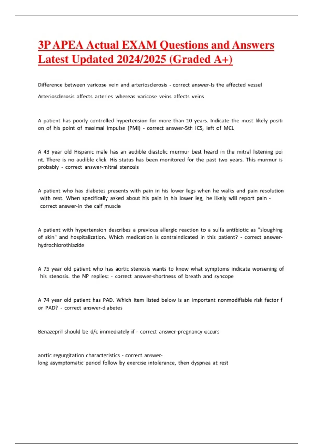 3P APEA Actual EXAM Questions and Answers