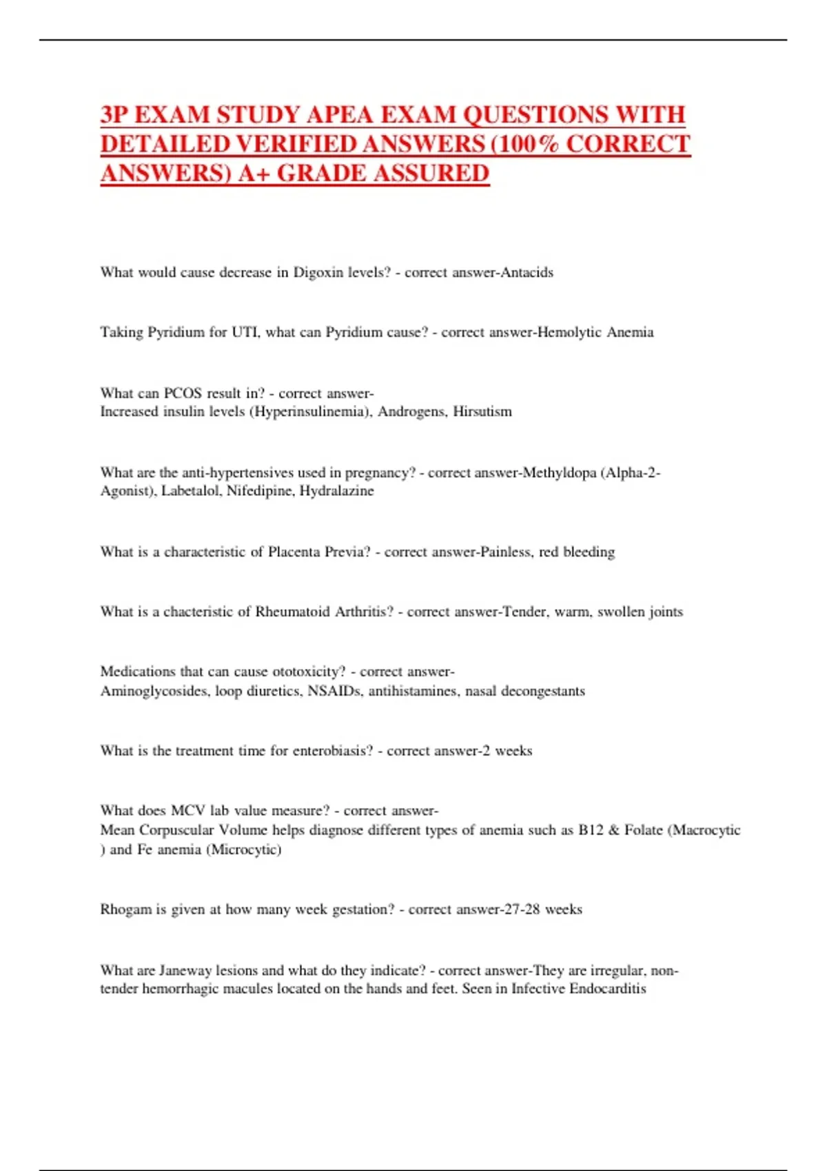 3P EXAM STUDY APEA EXAM QUESTIONS WITH DETAILED VERIFIED ANSWERS (100% CORRECT ANSWERS) A+ GRADE ASSURED