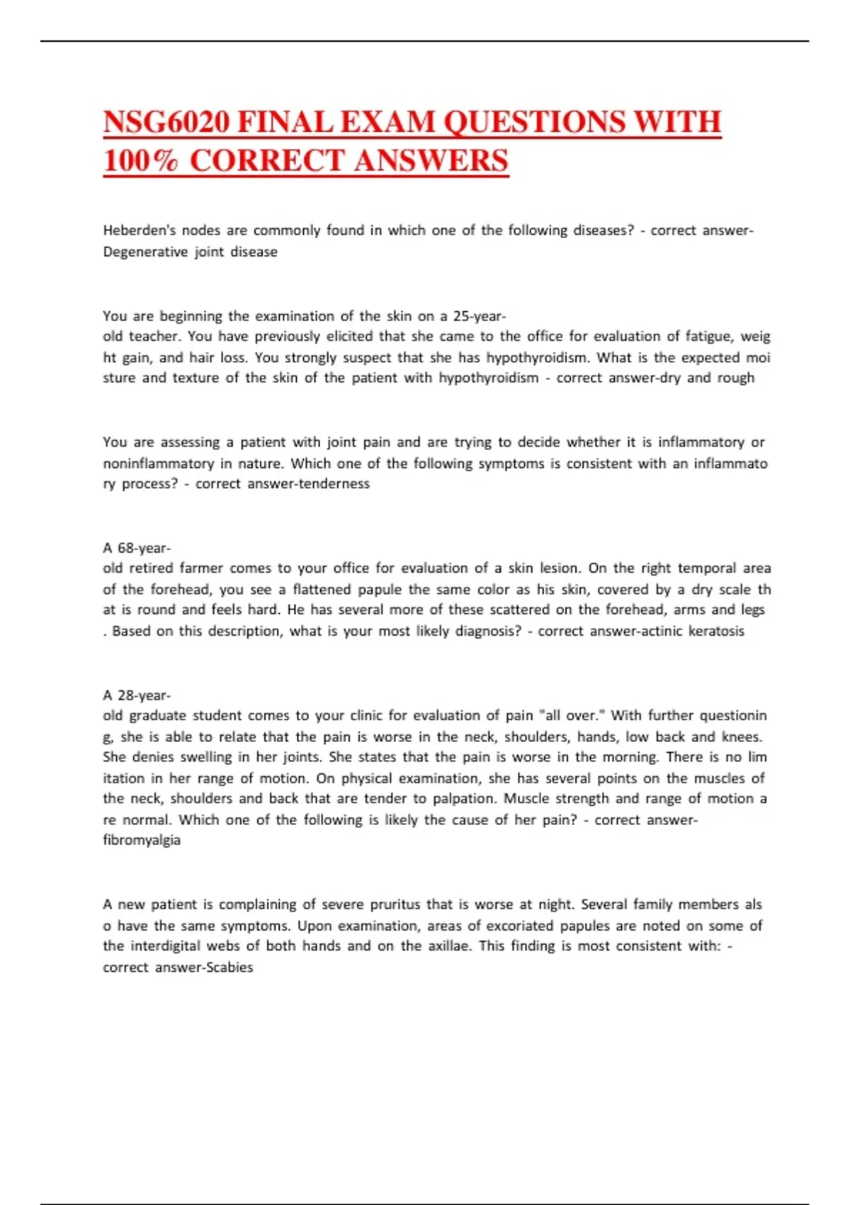 NSG6020 FINAL EXAM QUESTIONS WITH