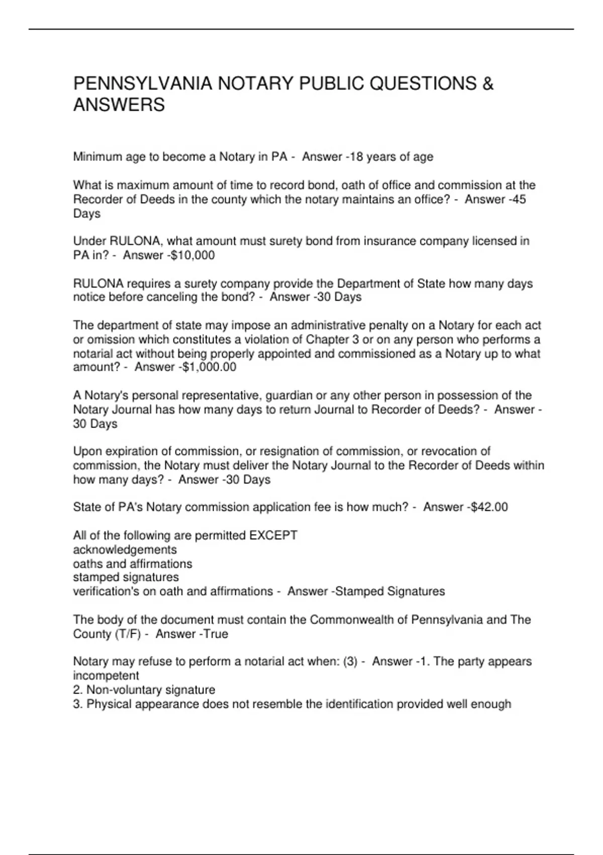 PENNSYLVANIA NOTARY PUBLIC QUESTIONS &