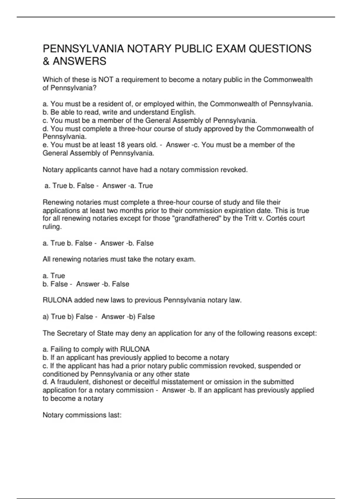 PENNSYLVANIA NOTARY PUBLIC EXAM QUESTIONS & ANSWERS
