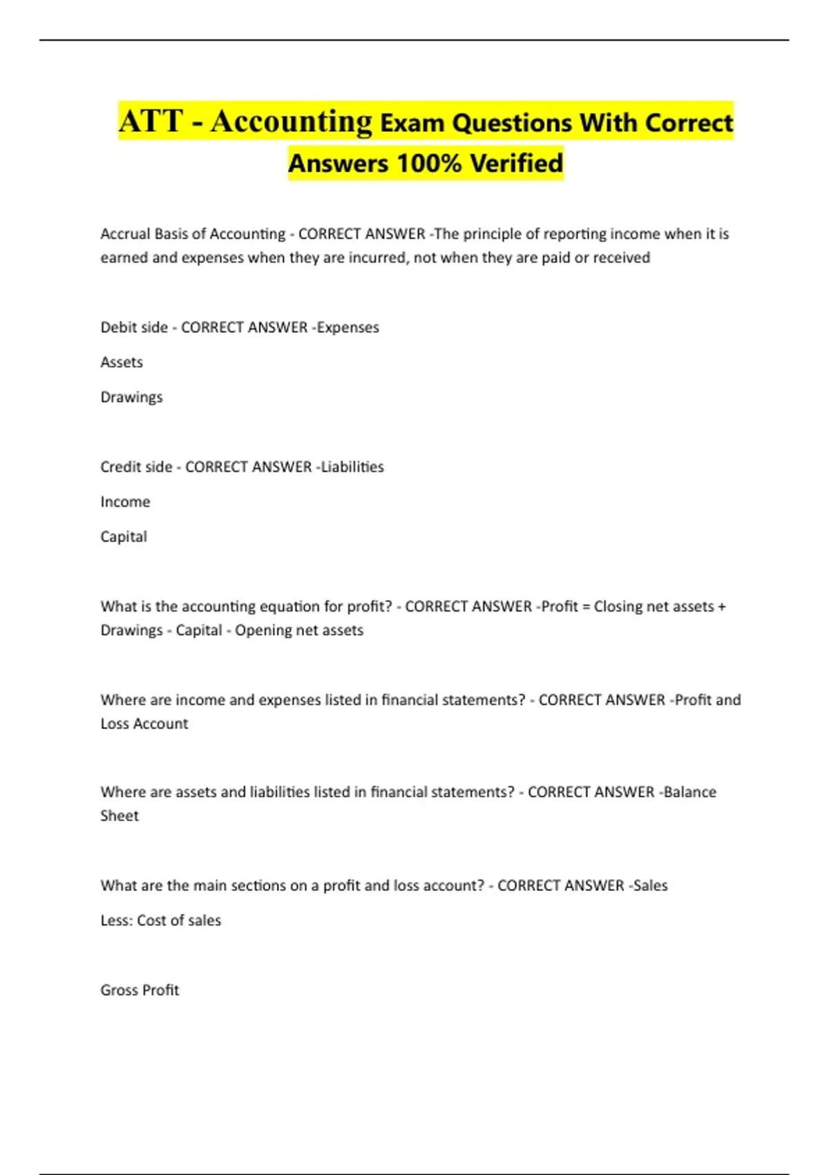 ATT - Accounting Exam Questions With Correct