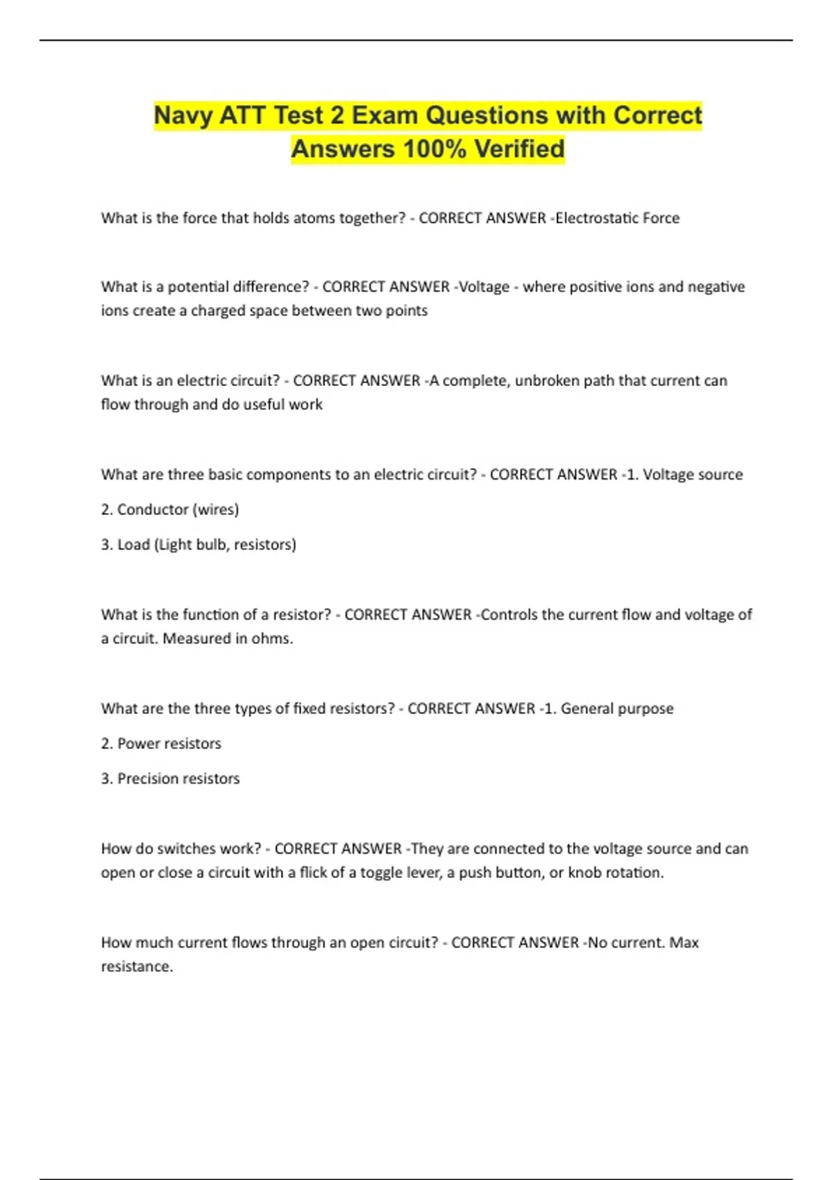 Navy ATT Test 2 Exam Questions with Correct Answers 100% Verified