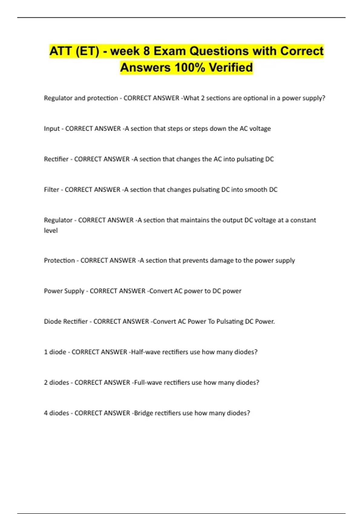 ATT (ET) - week 8 Exam Questions with Correct Answers 100% Verified