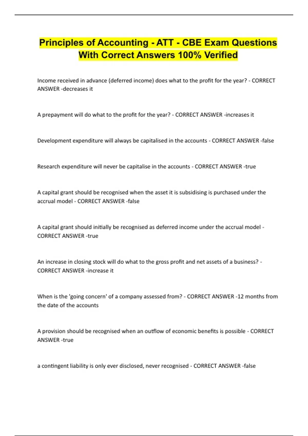 Principles of Accounting - ATT - CBE Exam Questions With Correct Answers 100% Verified
