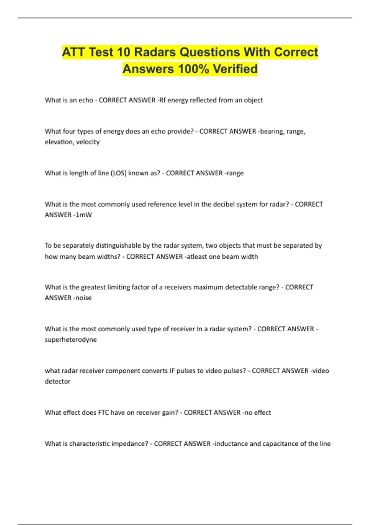 ATT Test 10 Radars Questions With Correct