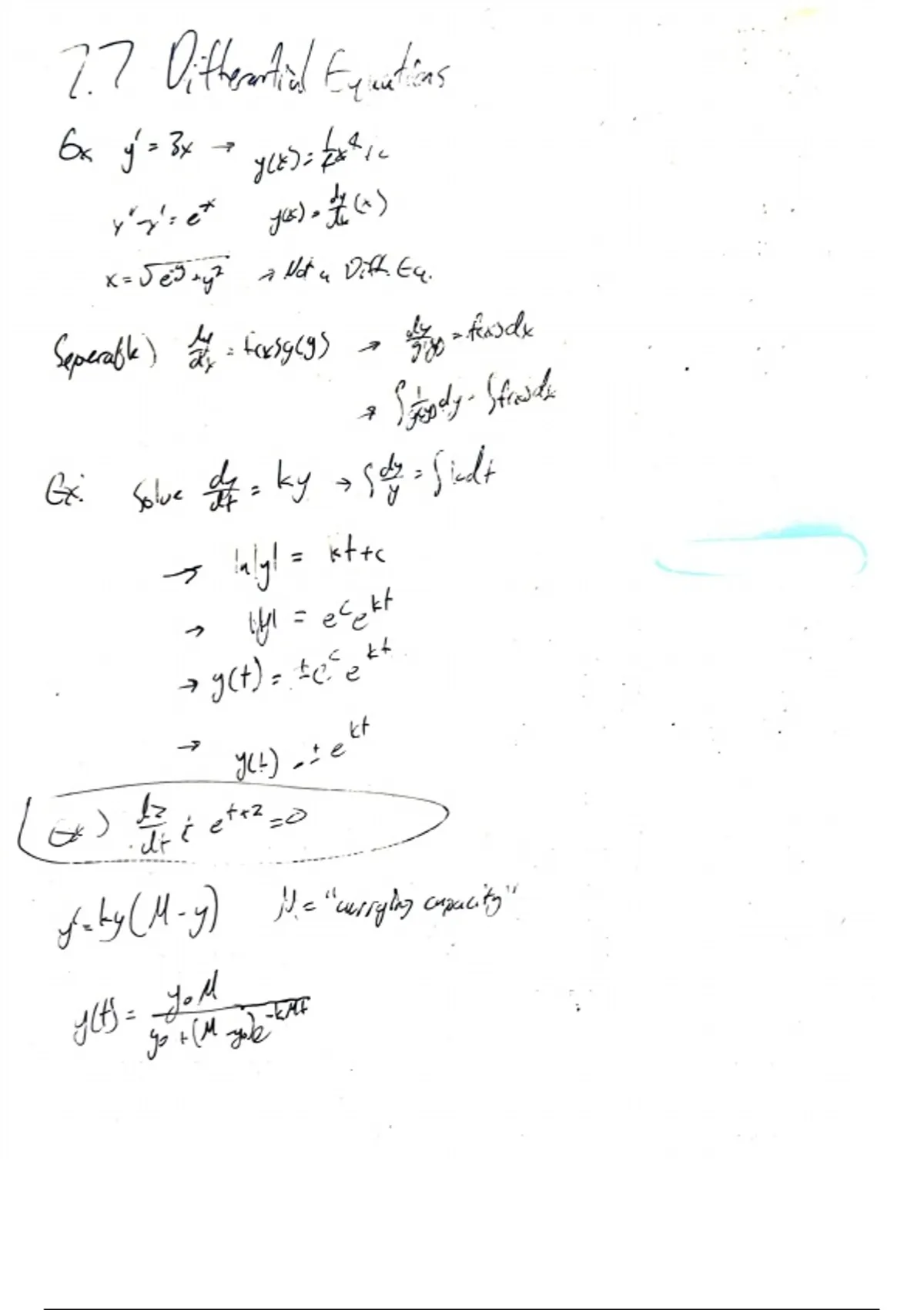 Class notes APPM 1360 Unit 7.7 Differential Equations
