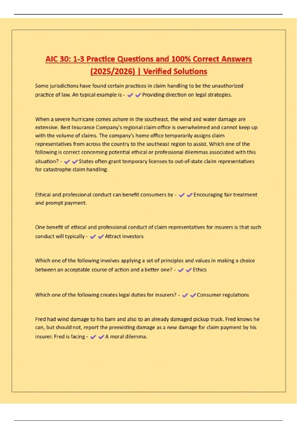 AIC 30: 1-3 Practice Questions and 100% Correct Answers (2025/2026) | Verified Solutions