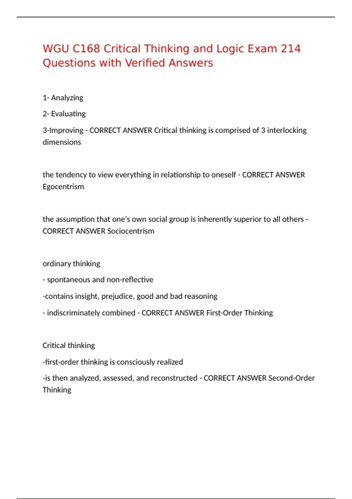 WGU C168 Critical Thinking and Logic Exam 214 Questions with Verified Answers,100%CORRECT