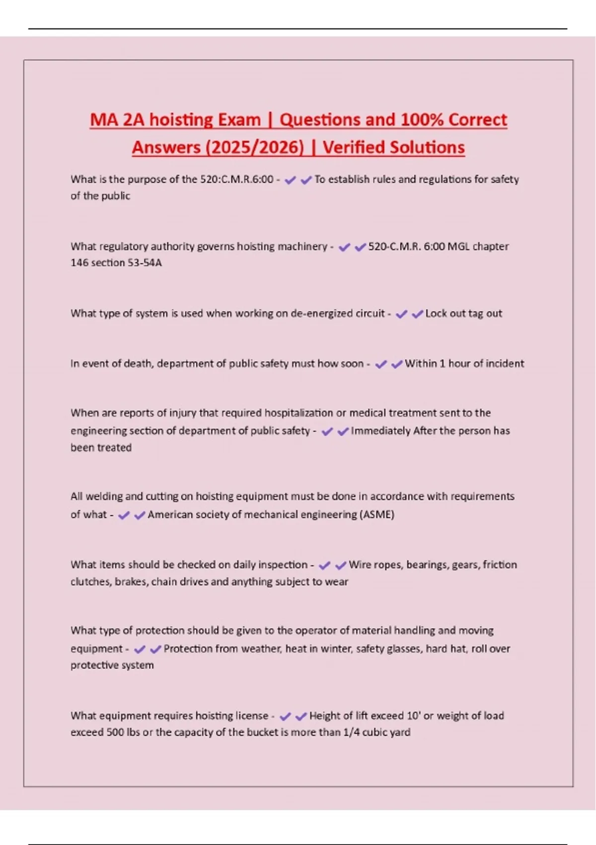 MA 2A hoisting Exam | Questions and 100% Correct Answers (2025/2026) | Verified Solutions
