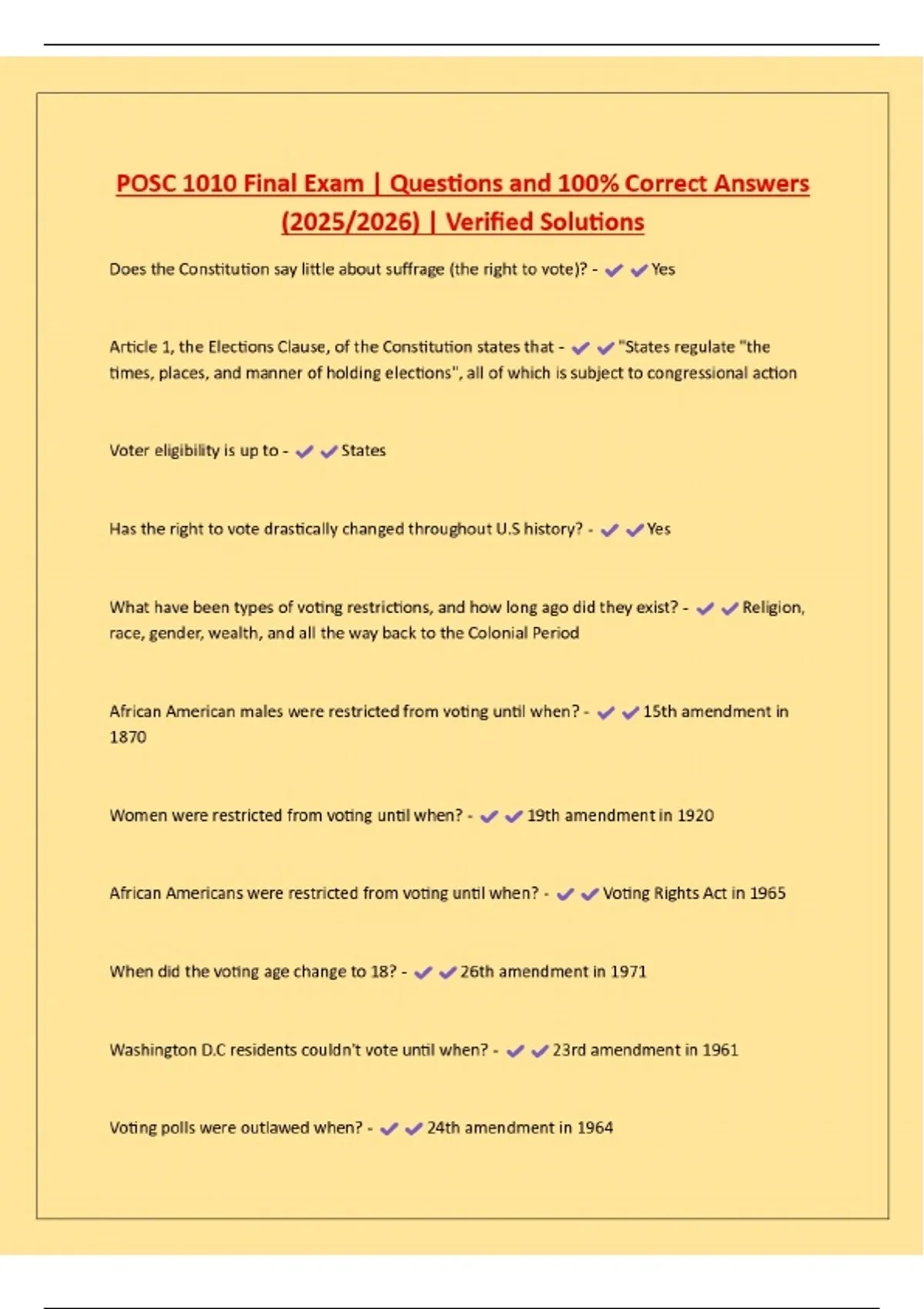 POSC 1010 Final Exam | Questions and 100% Correct Answers (2025/2026) | Verified Solutions
