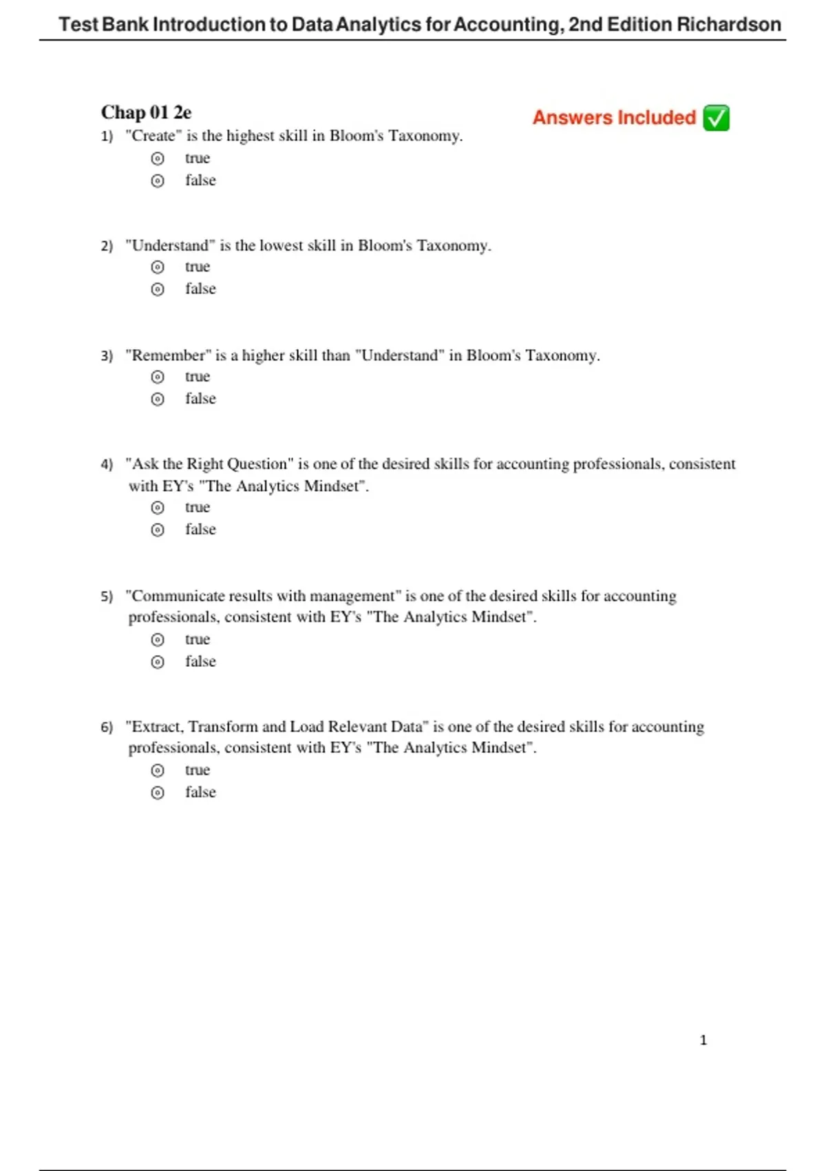 1) "Create" is the highest skill in Bloom's Taxonomy.