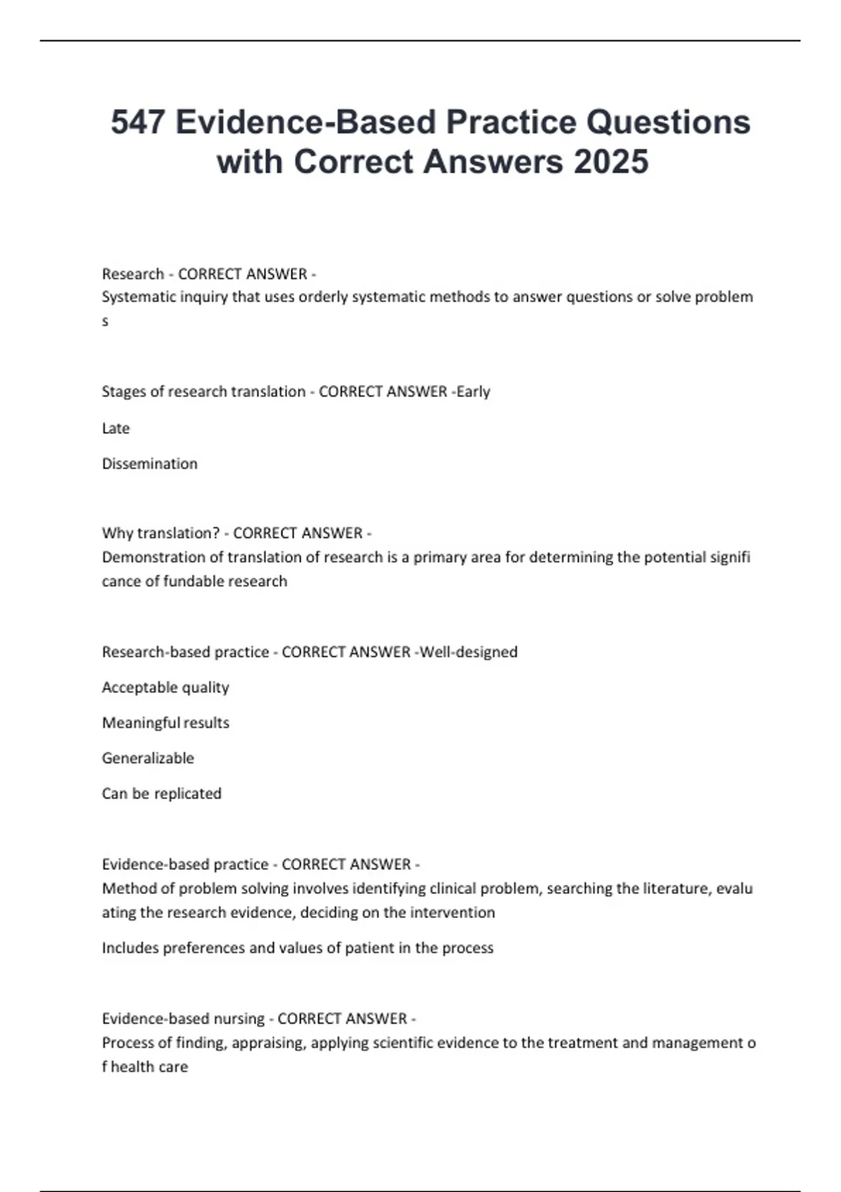 547 Evidence-Based Practice Questions