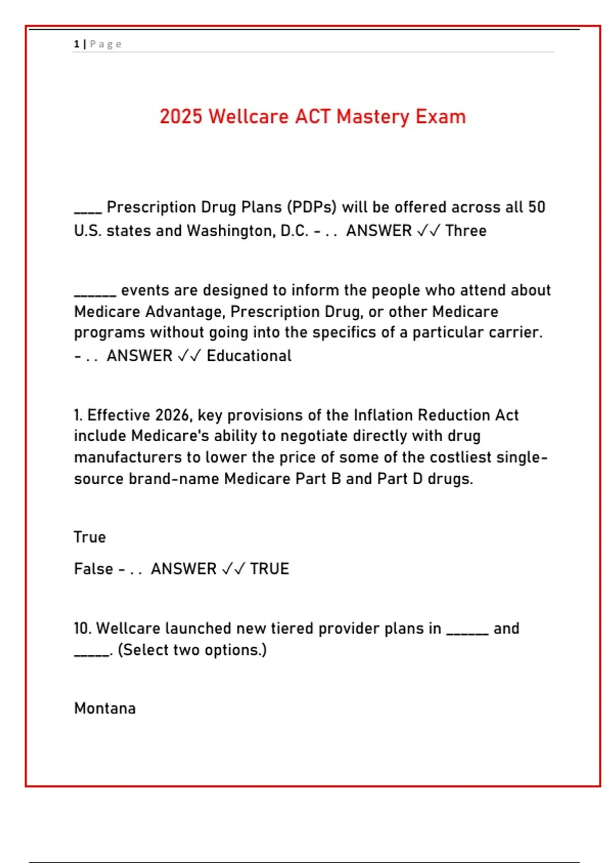 2025 Wellcare ACT Mastery Exam