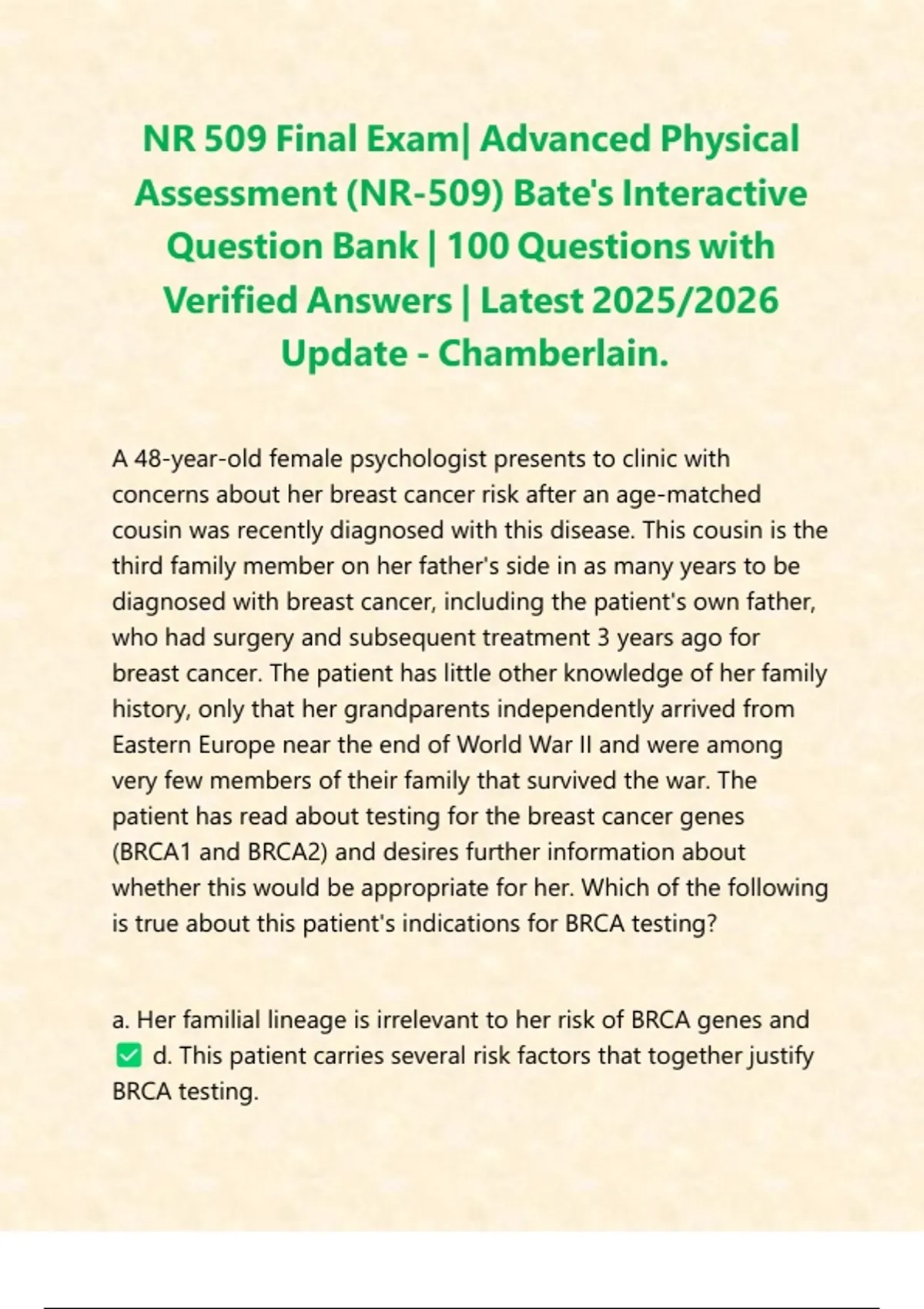 a. Her familial lineage is irrelevant to her risk of BRCA genes and