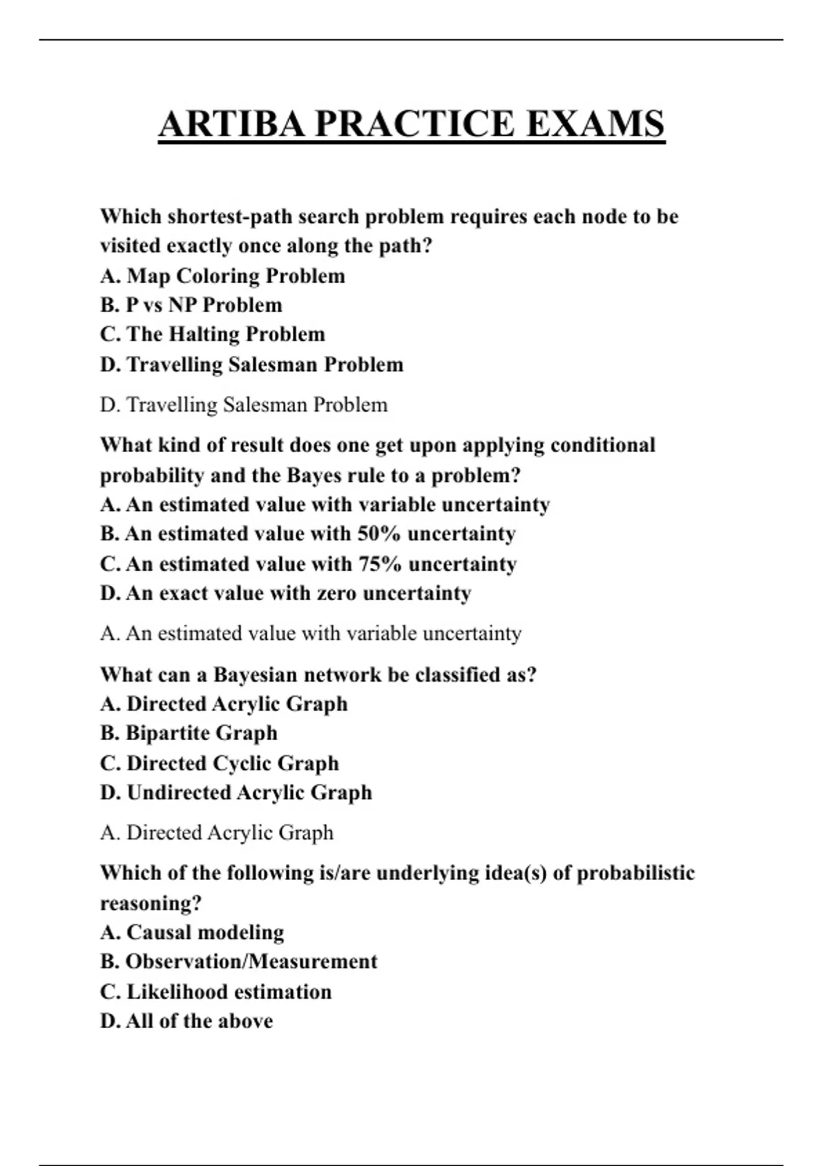 ARTIBA PRACTICE EXAMS QUESTIONS AND ANSWERS 2025