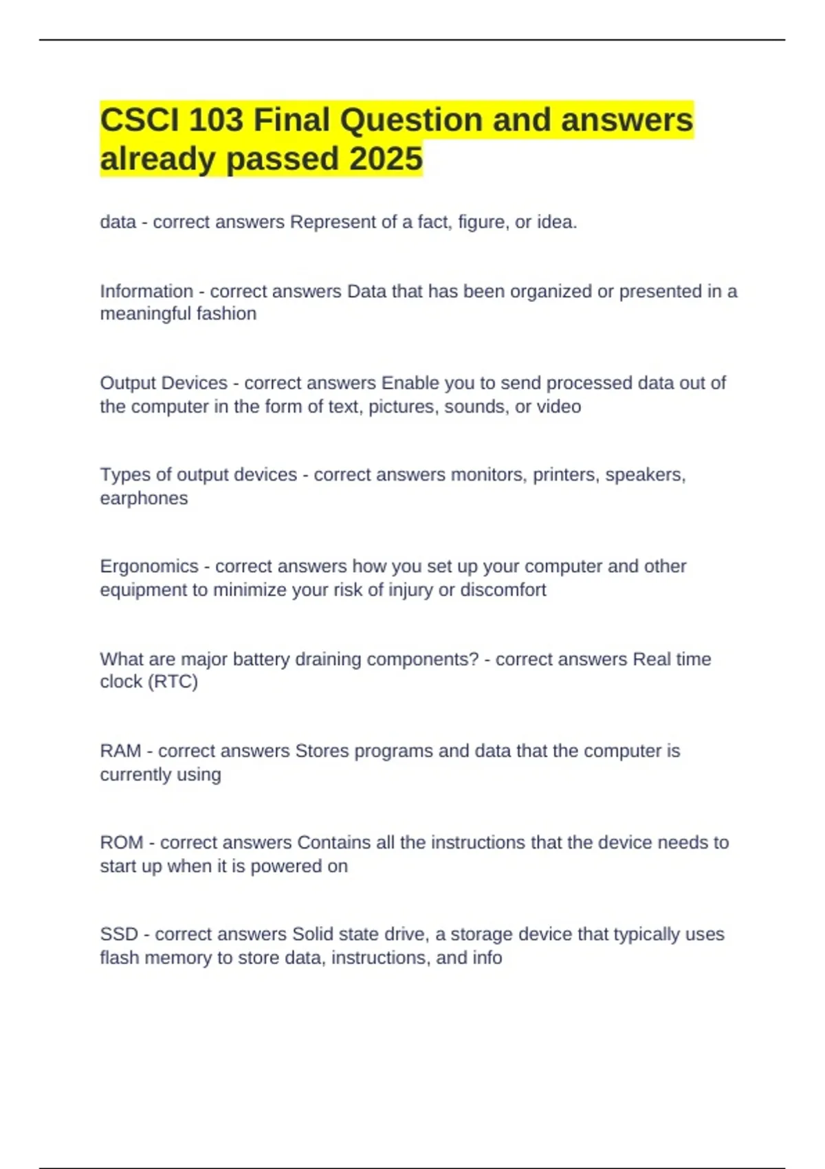 SSD - correct answers Solid state drive, a storage device that typically uses