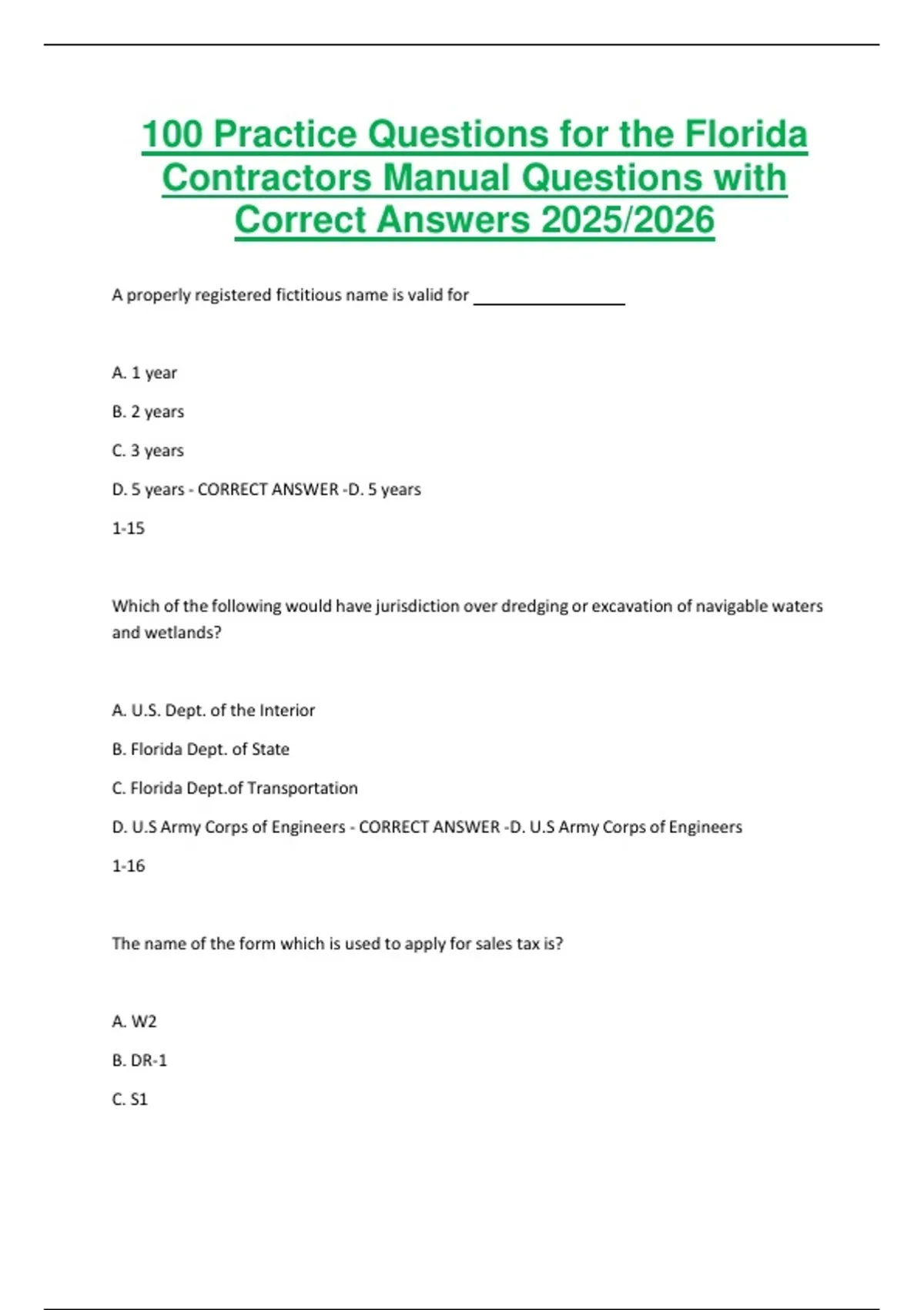 D. U.S Army Corps of Engineers - CORRECT ANSWER -D. U.S Army Corps of Engineers