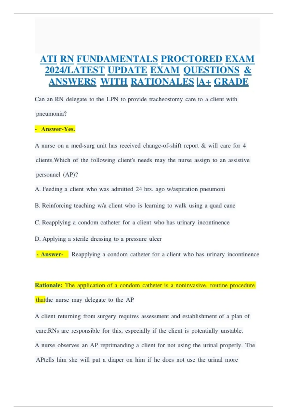 2024/LATEST UPDATE EXAM QUESTIONS &