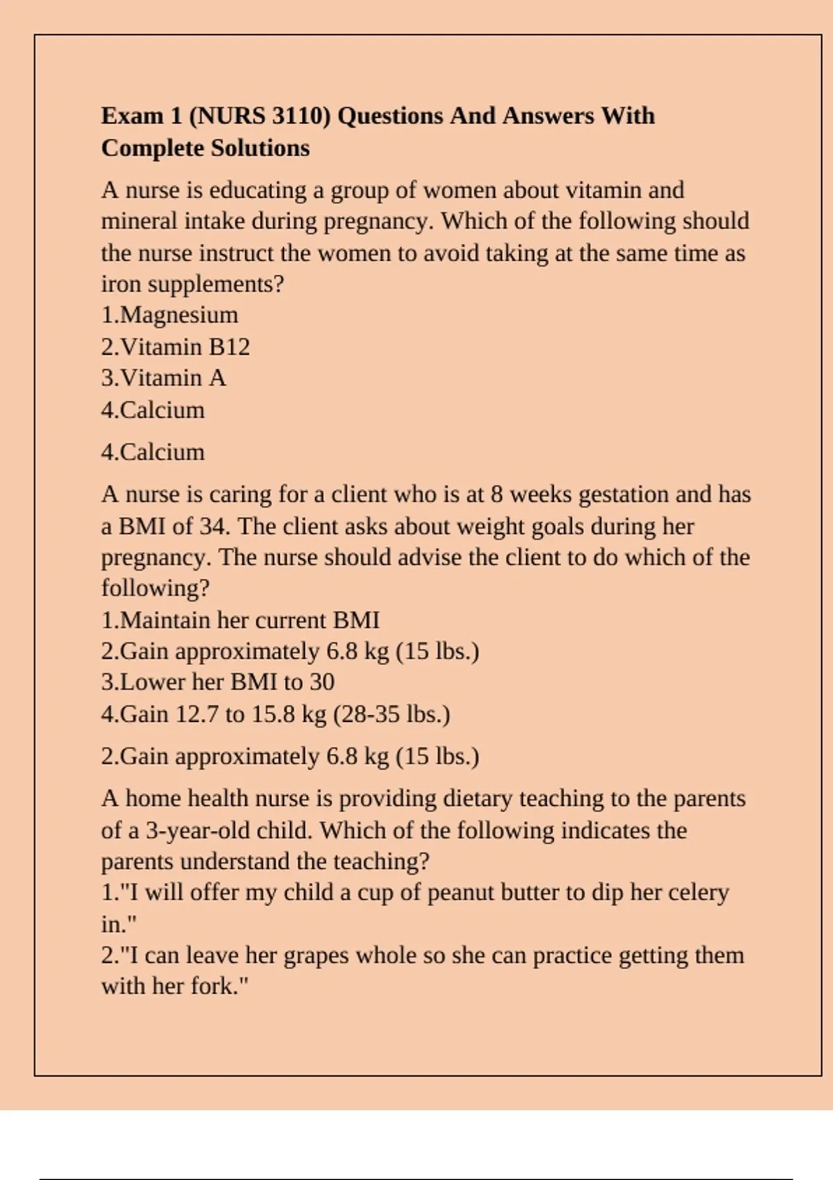 mineral intake during pregnancy. Which of the following should