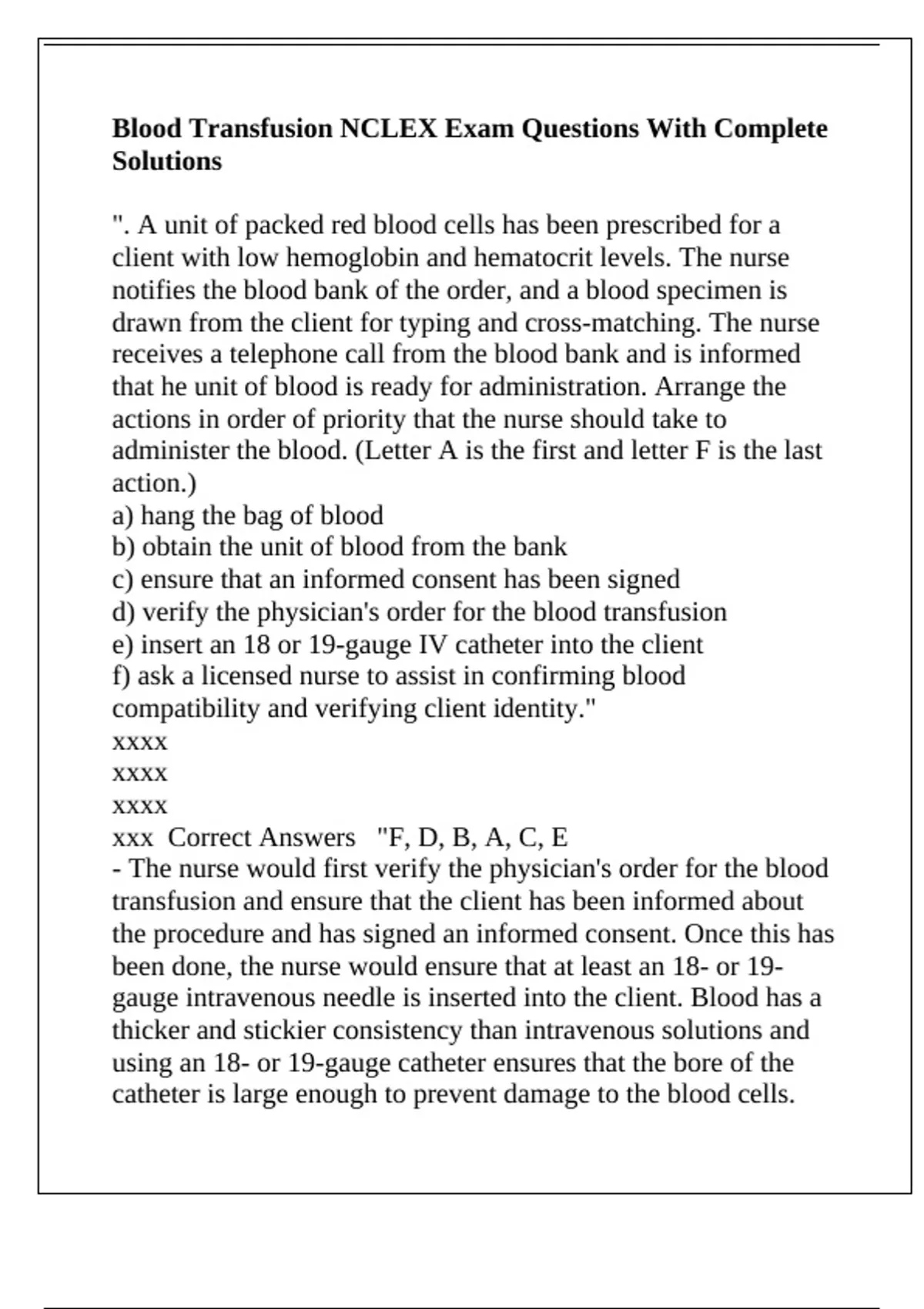 xxx Correct Answers "F, D, B, A, C, E