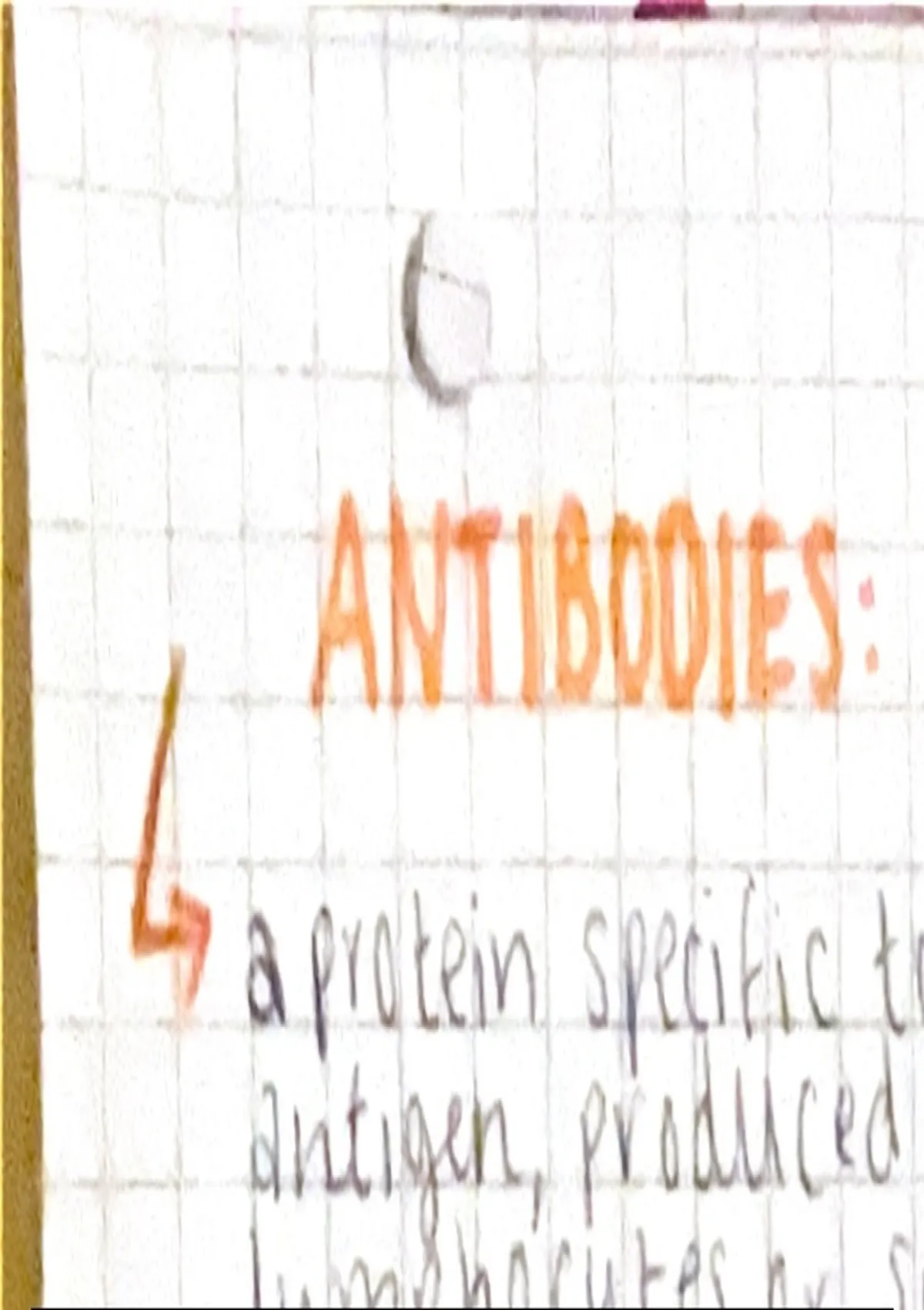 Two sheets of a level year 1 revision notes: - humoral immunity and antibodies topic sheet with diagrams - cell mediated immunity topic sheet with HANDWRITTEN NOTES