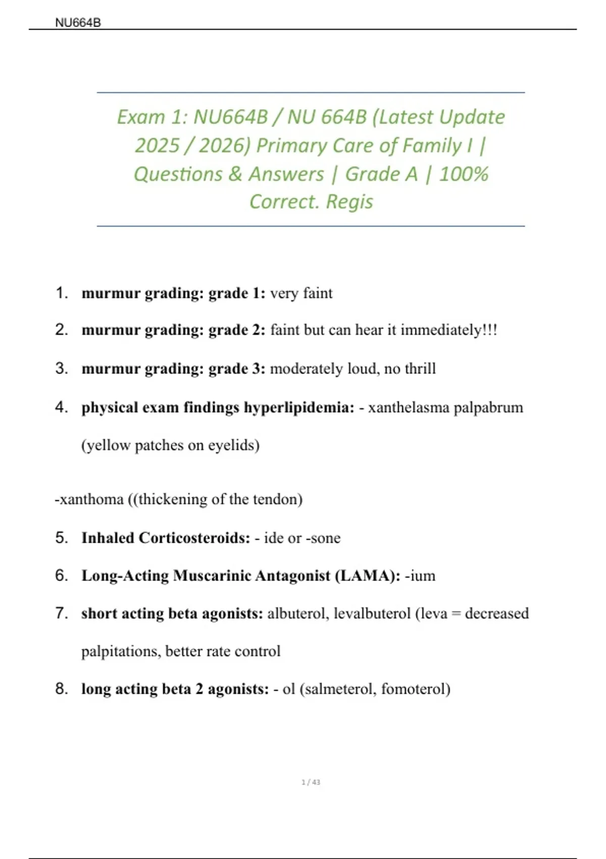 Exam 1: NU664B / NU 664B (Latest Update