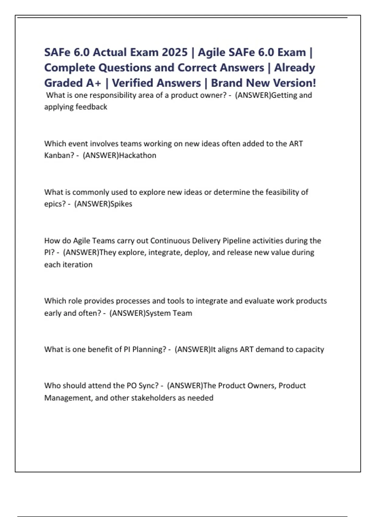SAFe 6.0 Actual Exam 2025 | Agile SAFe 6.0 Exam |