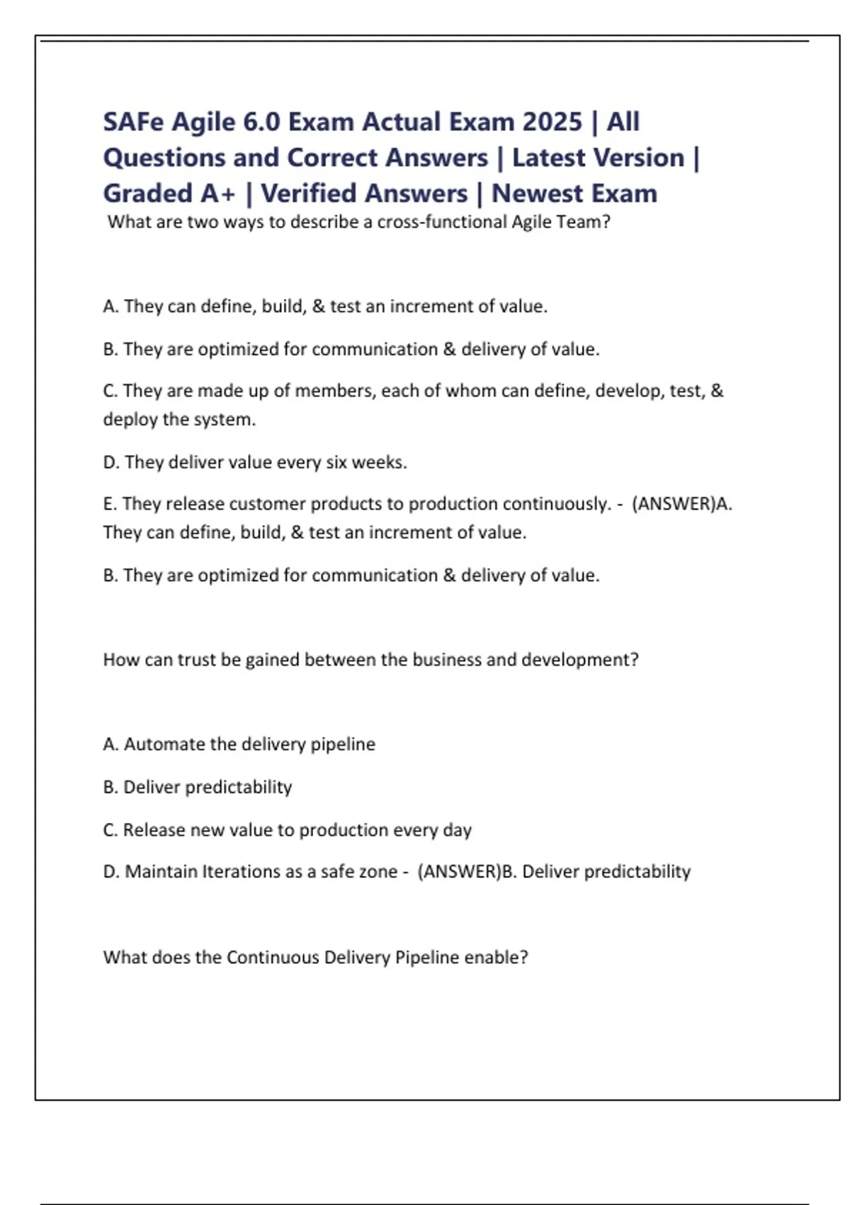 SAFe Agile 6.0 Exam Actual Exam 2025 | All Questions and Correct Answers | Latest Version | Graded A+ | Verified Answers | Newest Exam