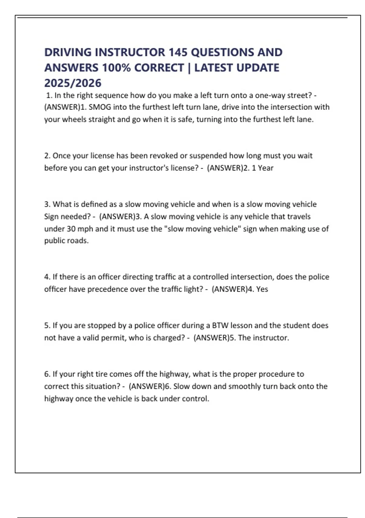 DRIVING INSTRUCTOR 145 QUESTIONS AND
